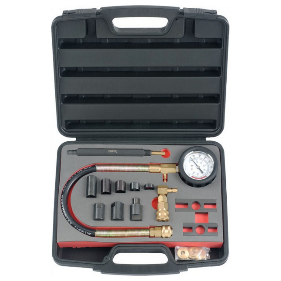 De FORCE druktesters zijn onmisbaar voor het nauwkeurig meten en controleren van druk in motoren en technische systemen. Dankzij de betrouwbare meters en stevige uitvoering zijn ze ideaal voor diagnose, onderhoud en reparaties.