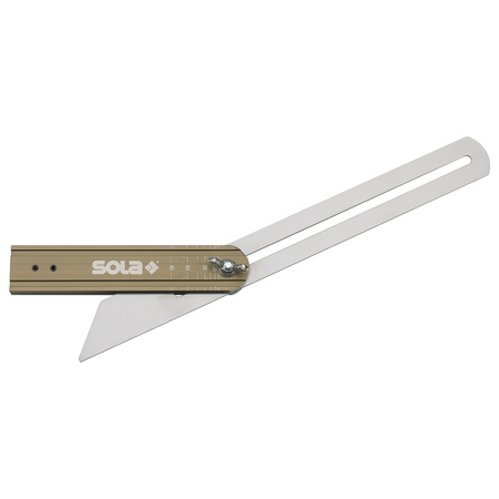 Verenstaal, brons geanodiseerd aluminium blok. Gegalvaniseerde vleugelmoer voor het vastzetten van het stalen been. met graden aanduiding.