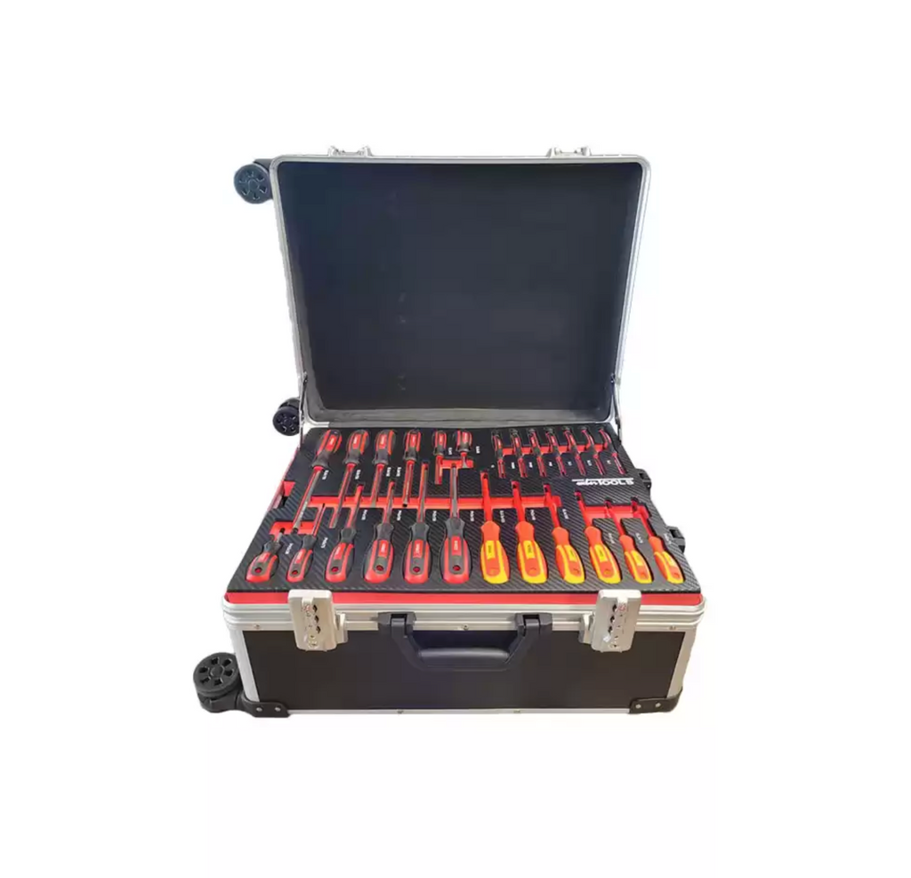 Deze hoogwaardige aluminium gereedschapskoffer is voorzien van vier zwenkwielen voor optimale mobiliteit en bevat een complete set van 139 gereedschappen, overzichtelijk opgeborgen in vier foam inlays. Met een afmeting van 50 × 39 × 23 cm biedt de koffer een compacte maar ruime oplossing.