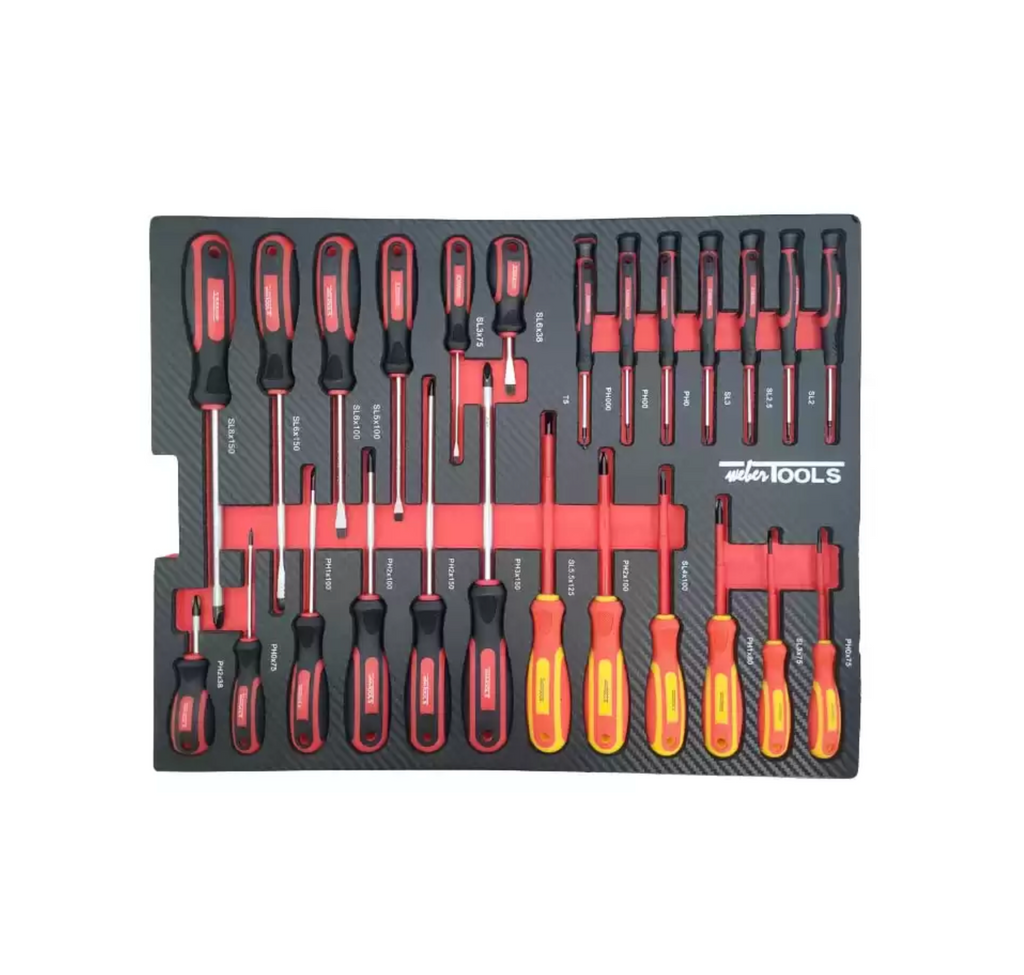 - Sleufschroevendraaiers 3x75mmL - 5x100mmL - 6x38mmL - 6x100mmL - 6x150mmL - 8x150mmL