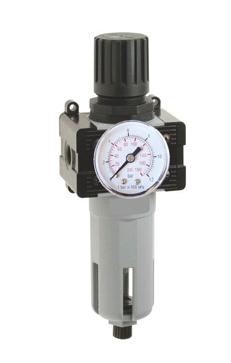 Deze 3/8" waterafscheider met drukregelaar en manometer is ideaal voor persluchtsystemen waar je schone, droge en stabiele lucht nodig hebt. De unit filtert vocht en vuil uit de luchtstroom en regelt de werkdruk nauwkeurig, zodat je gereedschap, spuitapparatuur en machines beter presteren en langer meegaan.