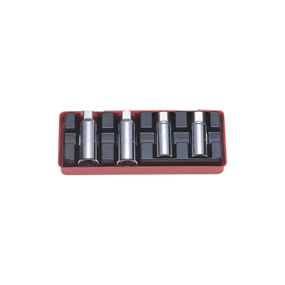 Ontdek onze hoogwaardige 4-delige set draadeinduitdrukkers, perfect ontworpen voor al uw handmatige toepassingen. Deze veelzijdige draadeind sleutelset is ideaal voor zowel professionele als doe-het-zelf klussen en biedt een betrouwbare oplossing voor het bevestigen en losmaken van draadeinden met verschillende metrische maten.