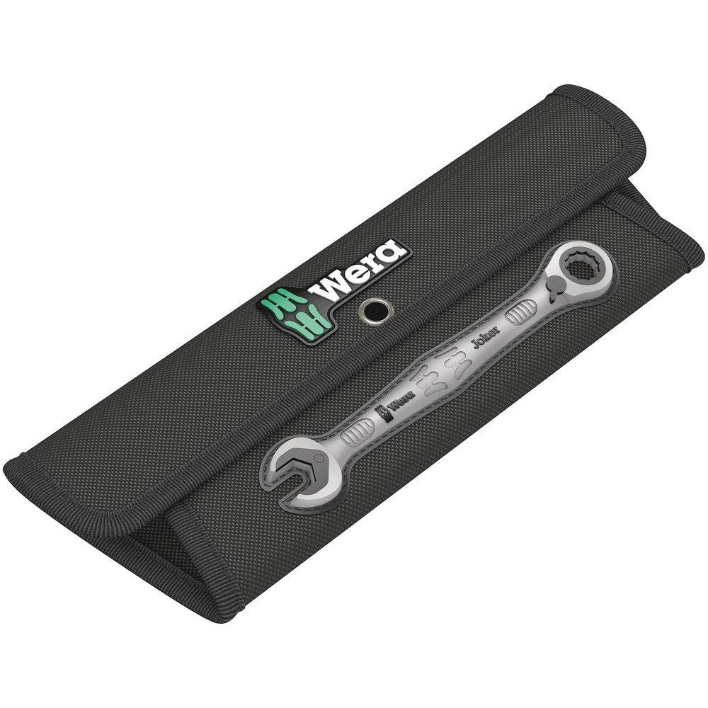 Hoogwaardige ringratel/steeksleutel-set van Wera: Alles wat een sleutel moet kunnen. En nog veel meer. Sneller, beter, mooier. Kortom: een echte Joker. De nieuwe generatie steek/ring-ratelsleutels. 4-delige set in robuust etui. Voor zeskant-schroeven resp. moeren. Met vasthoudfunctie via metalen plaat in bek, om het verliezen van schroeven en moeren te reduceren. De verwisselbare metalen plaat in de bek houdt met extra harde tanden schroeven en moeren en verkleint het risico op wegglijden. De geïntegreerde eindaanslag voorkomt het wegglijden naar beneden van de schroefkop en maakt hoge draaimomenten mogelijk. De intelligente dubbele zeskant-geometrie zorgt voor een sluitende verbinding met schroef of moer en reduceert zo het risico op wegglijden. Dankzij de terughaalhoek van slechts 30° aan de steeksleutelzijde behoort het tijdrovende omkeren van de sleutel tijdens het schroeven tot het verleden. Ratelmechanisme aan ringzijde met uiterst fijne vertanding (80 tanden) voor flexibiliteit, ook op plekken waar weinig plaats is. De speciale smeedvorm maakt overdracht hoge draaimomenten mogelijk en geeft het geheel een hoge buigstijfheid. Gemaakt van sterk chroom-molybdeen staal met nikkel-chroom coating voor een hoge bescherming tegen corrosie. Met 'Take it easy'-Toolfinder: Kleurcodering op grootte.