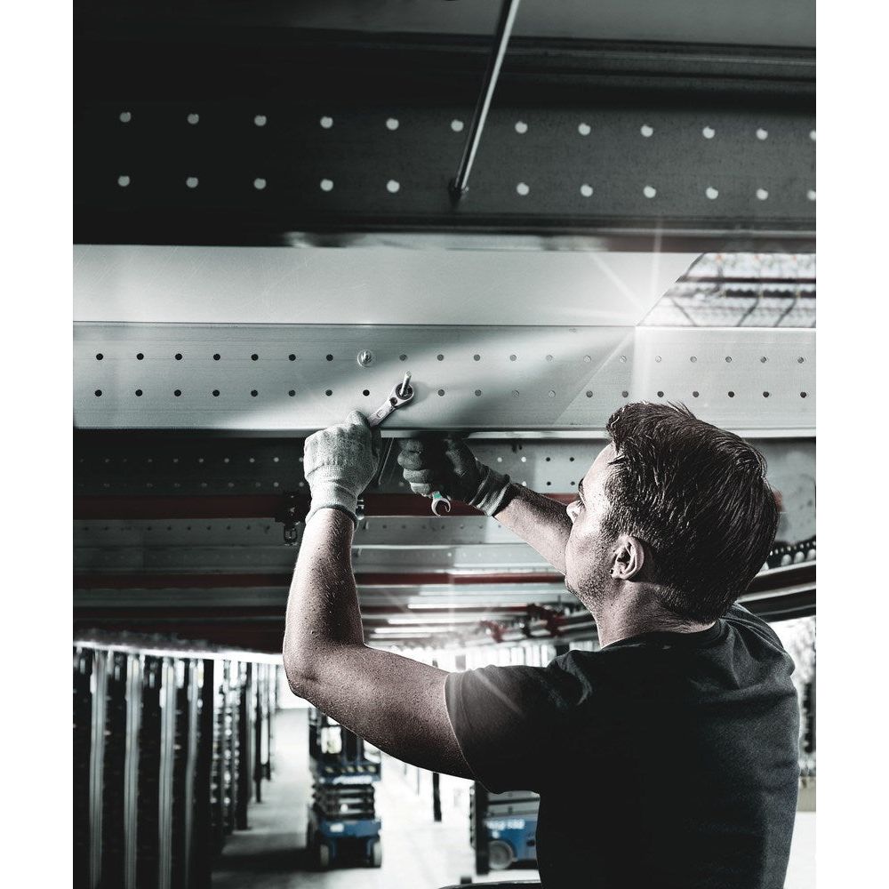 Hoogwaardige ringratel/steeksleutel-set van Wera: Joker steek/ring-ratelsleutel met gebogen ratelzijde en omschakelpal. Met vasthoudfunctie via metalen plaat in bek, om het verliezen van schroeven en moeren te reduceren. De geïntegreerde eindaanslag voorkomt het wegglijden naar beneden van de schroefkop en maakt hoge draaimomenten mogelijk. De verwisselbare metalen plaat in de bek houdt met extra harde tanden schroeven en moeren en vermindert het risico op wegglijden. De intelligente dubbele zeskantgeometrie zorgt voor een sluitende verbinding met schroef of moer en vermindert zo ook het risico op wegglijden. Dankzij de kleine terughaalhoek van slechts 30° aan de steekzijde behoort het tijdrovende omkeren van de sleutel tijdens het schroeven tot het verleden. Het omschakelbare ratelmechaniek aan de ringzijde met hoge fijne vertanding (80 tanden) biedt veel flexibiliteit, ook op plekken waar weinig ruimte is. Hoorbaar nauwkeurig ratelmechaniek. Het robuuste, tweedelige vergrendelingselement zorgt bovendien voor een zeer goede stabiliteit. Met 15° gebogen ratelzijde voor veilig werken bij hoge draaimomenten. De speciale smeedvorm maakt overdracht hoge draaimomenten mogelijk en geeft het geheel een hoge buigstijfheid. Gemaakt van sterk chroom-molybdeen staal met nikkel-chroom coating voor een hoge bescherming tegen corrosie. Met 'Take it easy'-Toolfinder: Kleurcodering op maat.