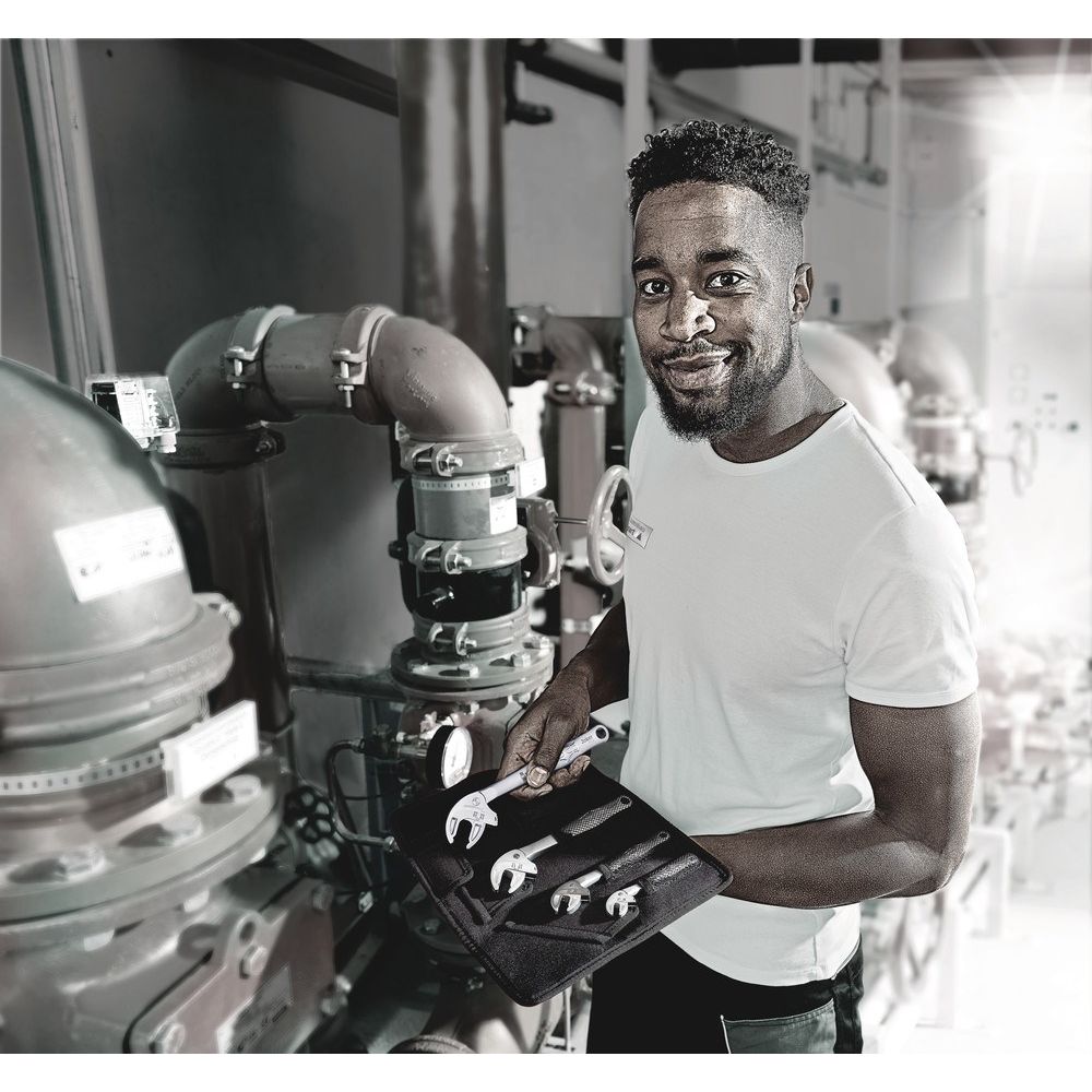 De compacte vouwtas met vier instelbare Joker 6004 is geschikt voor alle metrische en duimse afmetingen in het toepassingsbereik van 7 tot en met 19 mm resp. ¼" tot en met ¾"
