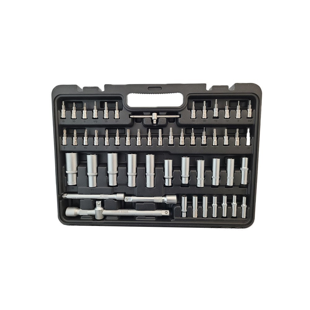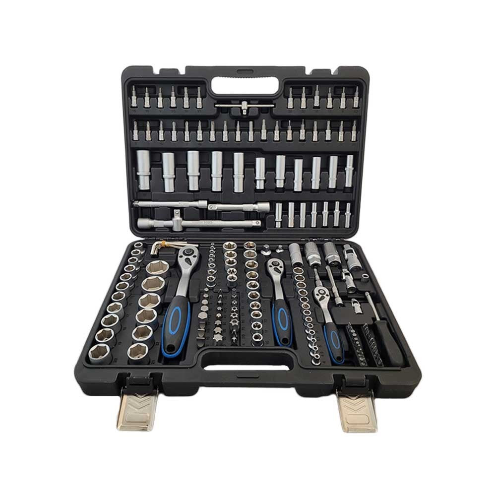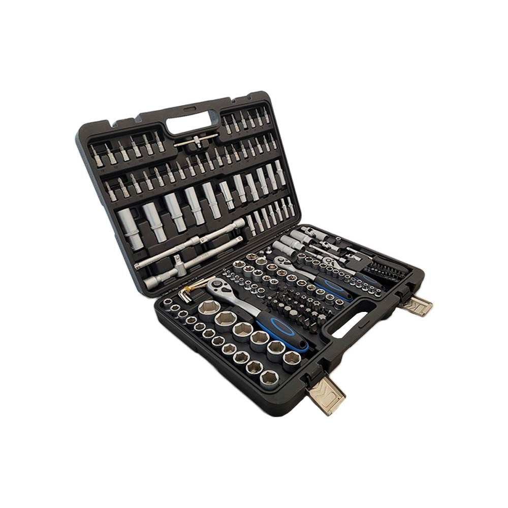 Doppenset 1/4" - 3/8" - 1/2" met 171 stuks gereedschap van gepolijst en verchroomd Chrome Vanadium staal.