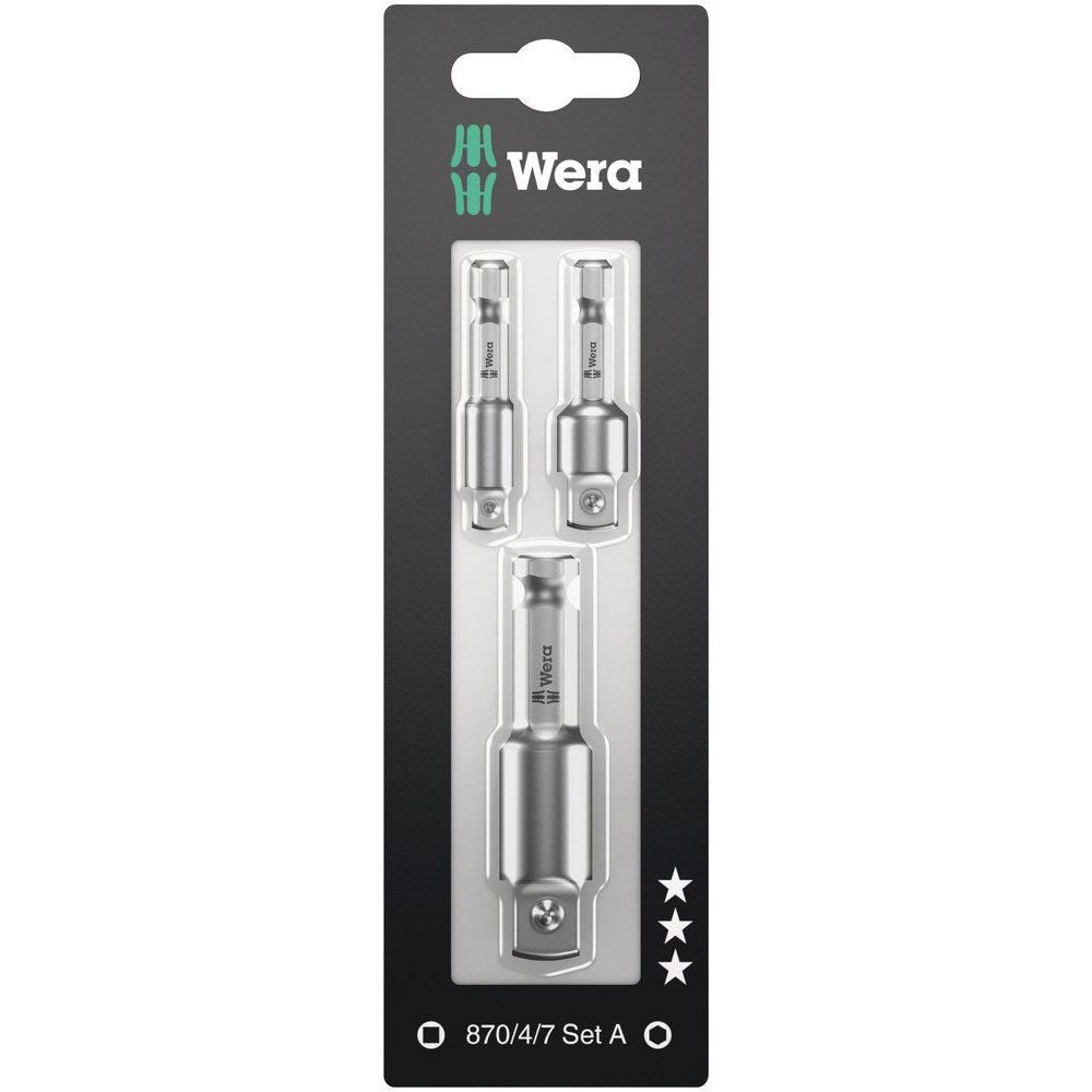 Gereedschapsschachtset met buitenvierkant-aandrijving van Wera. Voor machinebediende steeksleutelinzetstukken. Aandrijving: 1/4" zeskant.