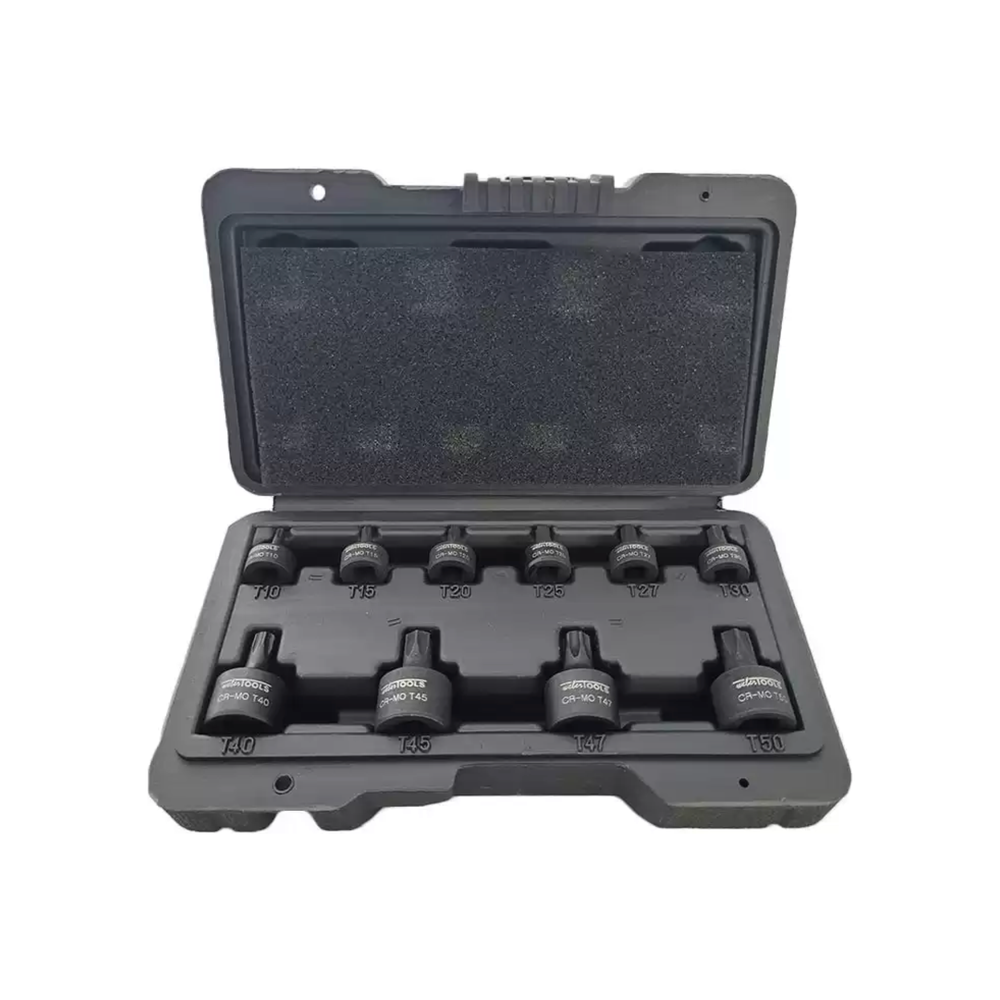 Ontdek de 9-delige Stubby Impact Torx Bit-doppenset van T10 tot T50, speciaal ontworpen voor zowel hobbyisten als professionals die op zoek zijn naar betrouwbare en hoogwaardige tools. Deze gepatenteerde set is vervaardigd uit sterk Chrome Molybdeen, wat zorgt voor een uitzonderlijke duurzaamheid en weerstand tegen slijtage.