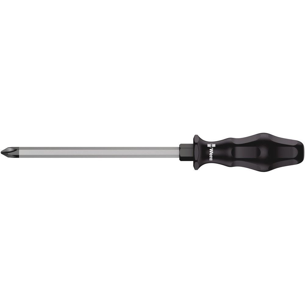 Wera schroefbeitel om te schroeven, beitelen, aanzetten en losdraaien van vastzittende schroeven. Met 1-delige Kraftform-handgreep voor snel en veilig werken.Met doorlopende zeskant kling van een hoogwaardig bit-materiaal, voor een verliesvrije krachtoverdracht, ook wanneer er met een hamer op wordt geslagen. Het extreem taaie materiaal voorkomt splinteren of breken van de kling. Met geïntegreerde slagkap voor een langere levensduur en een geringere kans op rondvliegende splinters. Via de geïntegreerde zeskant-sleutelhulp kunnen steek- en ringsleutels worden geplaatst om hogere draaimomenten uit te kunnen oefenen. De Wera Black Point-punt en een uitgebreide harding garanderen een lange gebruiksduur van de punt en zorgen voor extra corrosiebescherming en een hoge pasnauwkeurigheid. Zeskantige wegrolbescherming voorkomt telkens wegrollen op de werkplek.
