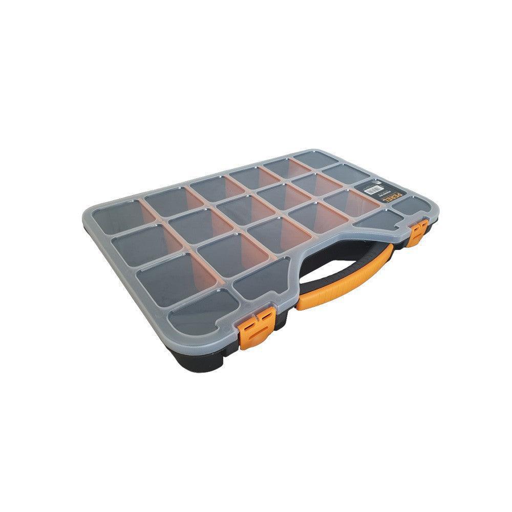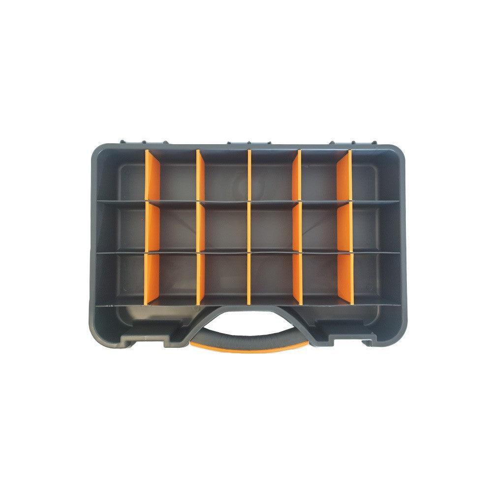 De doos is uitgerust met 18+2 vakken, wat betekent dat u de mogelijkheid heeft om kleine items, zoals schroeven, moeren, en andere hobbybenodigdheden, netjes en overzichtelijk te sorteren. De slimme indeling van de vakken maakt het eenvoudig om snel te vinden wat u zoekt, zonder dat u hoeft te graven in een chaotische verzameling.