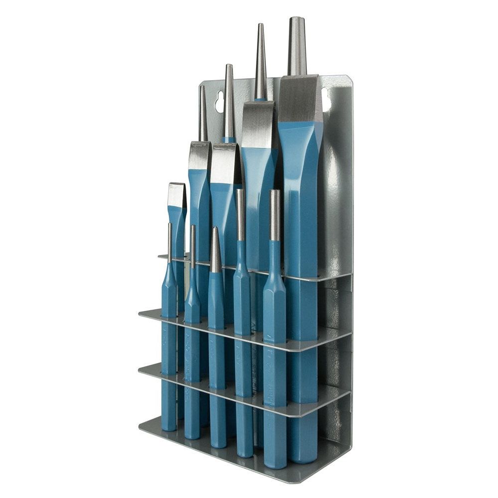 Beitelset in houder 14-delig in metalen displayrek.