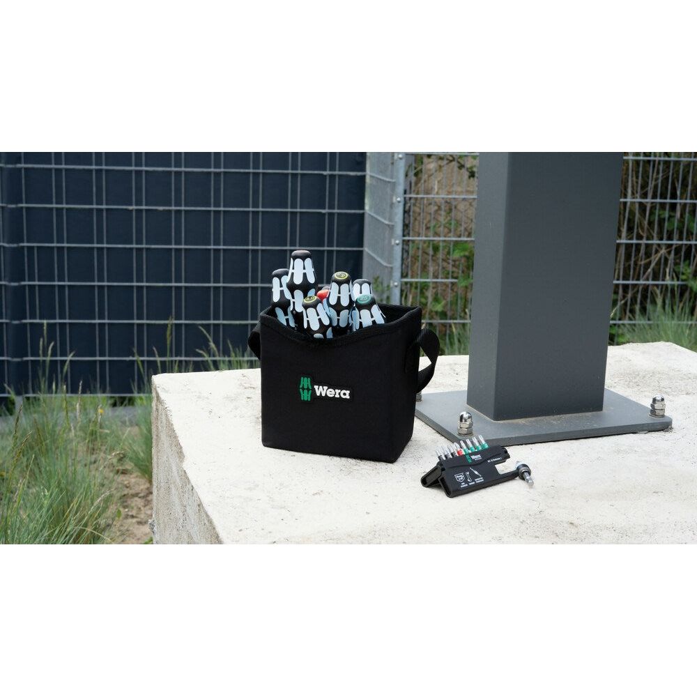 Neerzetbare Bit-Check met hoogwaardige RVS bits. Wera RVS gereedschap wordt gemaakt van RVS, waardoor lelijke vliegroest wordt voorkomen. 9 Wera RVS bits. 1 RVS Rapidaptor-snelwisselhouder. De meerdelige Bit-Check overtuigt door het lage gewicht en uitstekende compactheid. Daarbij zorgt het zachte materiaal in het onderste gedeelte van de Bit-Check voor een betere houvast voor de bits en maakt tegelijk het uitnemen daarvan makkelijker. Het profiel en het formaat van de bits zijn gemakkelijk te herkennen dankzij de Wera 'Take it easy'-Toolfinder met kleurcodering en duidelijk zichtbare beschrijving.