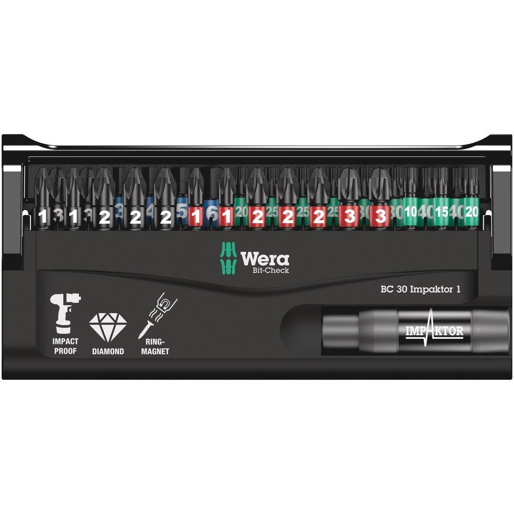 1 Impaktor-houder met veerring en ringmagneet, 29 Impaktor-bits. Bij de Impaktor-technologie wordt zo optimaal mogelijk gebruik gemaakt van de materiaaleigenschappen en is de geometrie volledig aangepast om langdurig gebruik mogelijk te maken, zelfs onder extreme werkomstandigheden; uitermate geschikt voor gebruik in combinatie met normaal in de handel verkrijgbare impact- en slagschroevendraaiers; houder met ringmagneet om lange en zware schroeven optimaal vast te houden, ideaal voor werkzaamheden boven het hoofd. De ruwe diamantcoating van de bits zorgt voor een hogere wrijvingsweerstand en verkleint zo het risico op wegglijden uit de schroef.
