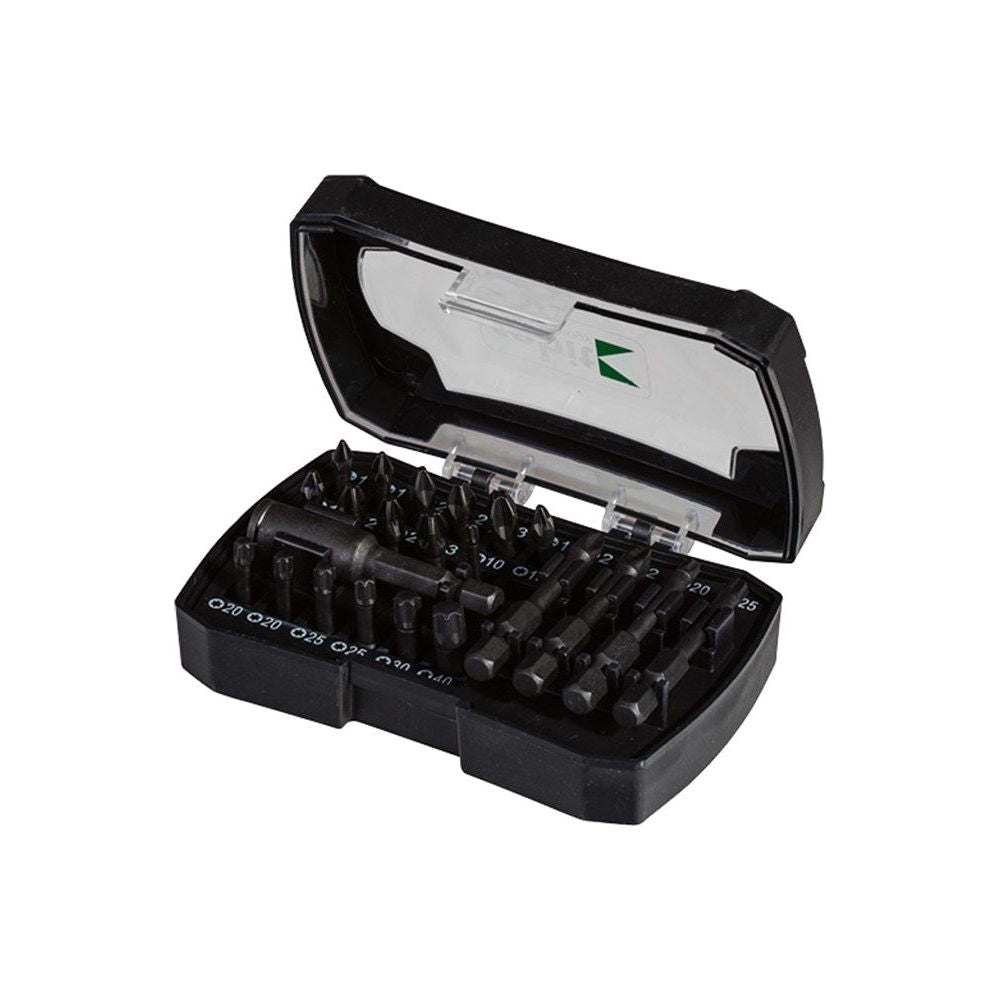 De set bevat 23 zorgvuldig geselecteerde onderdelen, waaronder een magnetische bithouder en een stevige kunststof box voor eenvoudig transport en opslag. Met de 18 krachtbits van 1/4'' in verschillende lengtes van 25 mm en 50 mm ben je uitgerust voor elke klus. De bits zijn onderverdeeld in diverse typen, waaronder: