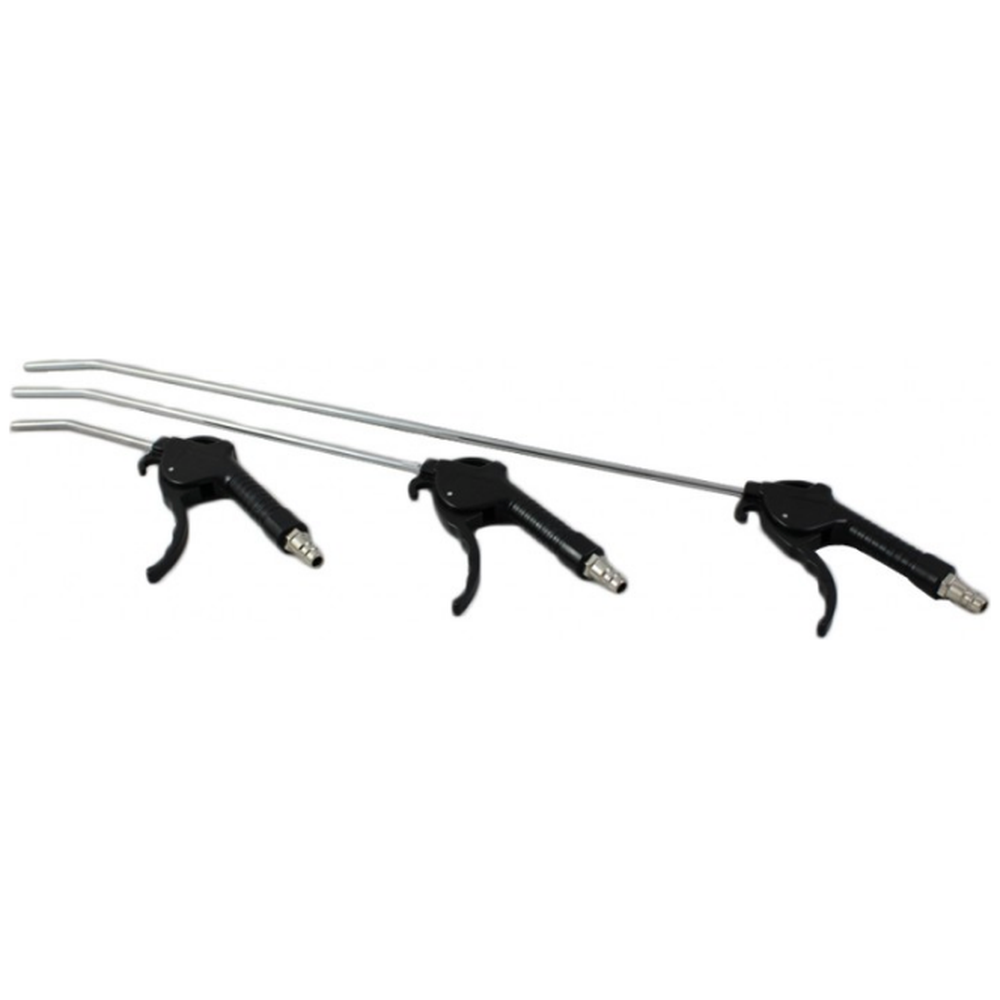 De blaaspistolen zijn uitgerust met een 6,35 mm (1/4") aansluitnippel, wat zorgt voor een eenvoudige en snelle aansluiting op uw luchtsysteem. Door de verschillende lengtes heeft u de flexibiliteit om het juiste blaaspistool te kiezen voor elke taak; de kortere versies zijn ideaal voor nauwkeurige klussen, terwijl de langere versies perfect zijn voor het bereiken van verder gelegen of moeilijk toegankelijke gebieden.