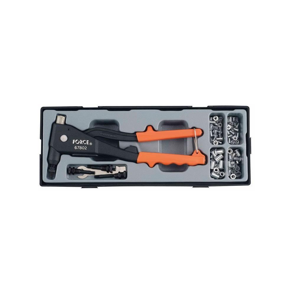 Ontdek de veelzijdigheid en het gebruiksgemak van de Blindklinkmoeren tangenset, een onmisbaar gereedschap voor zowel professionals als enthousiaste doe-het-zelvers. Deze 86-delige set is zorgvuldig samengesteld om aan al uw behoeften te voldoen bij het bevestigen van blindklinkmoeren. De set wordt geleverd in een stevige gereedschapmodule van thermogehard schokabsorberend polystyreen, wat zorgt voor optimale bescherming van uw gereedschap. De module past perfect in alle Force opbergsystemen, zodat u georganiseerd en efficiënt kunt werken.