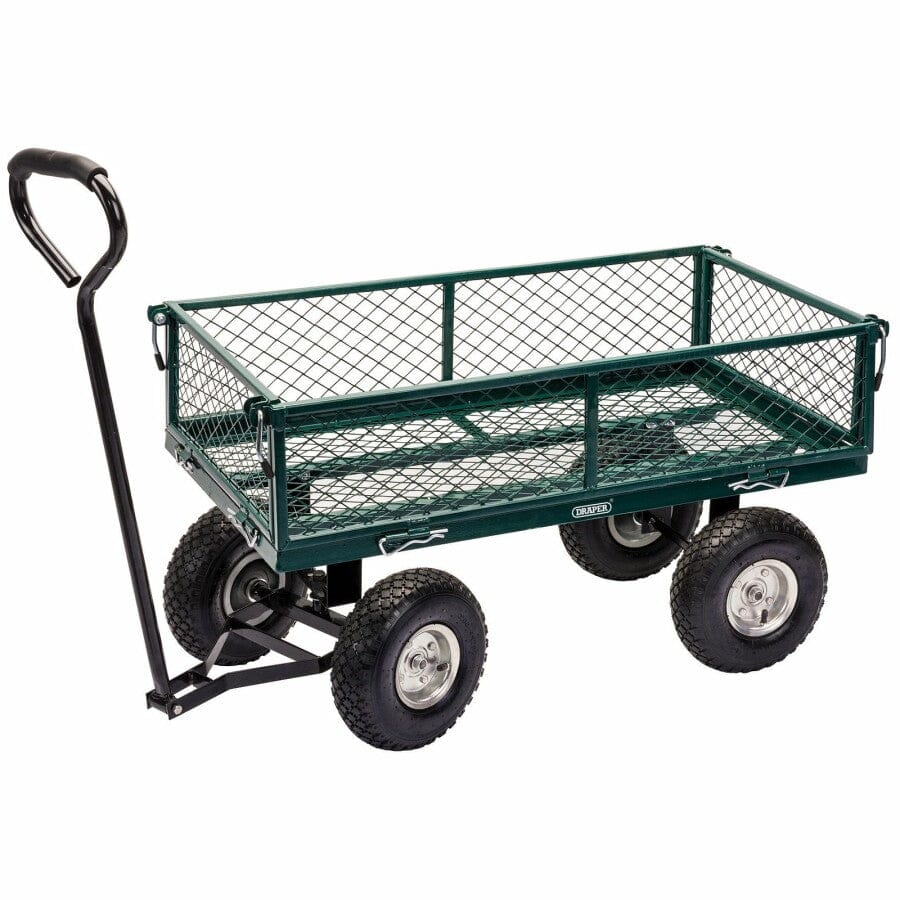 Deze tuinwagen / bolderkar is een echte alleskunner: handig bij tuinwerk, klusprojecten, evenementen of op het terrein. De verhoogde gaaswanden helpen om je lading netjes op zijn plek te houden tijdens het rijden.