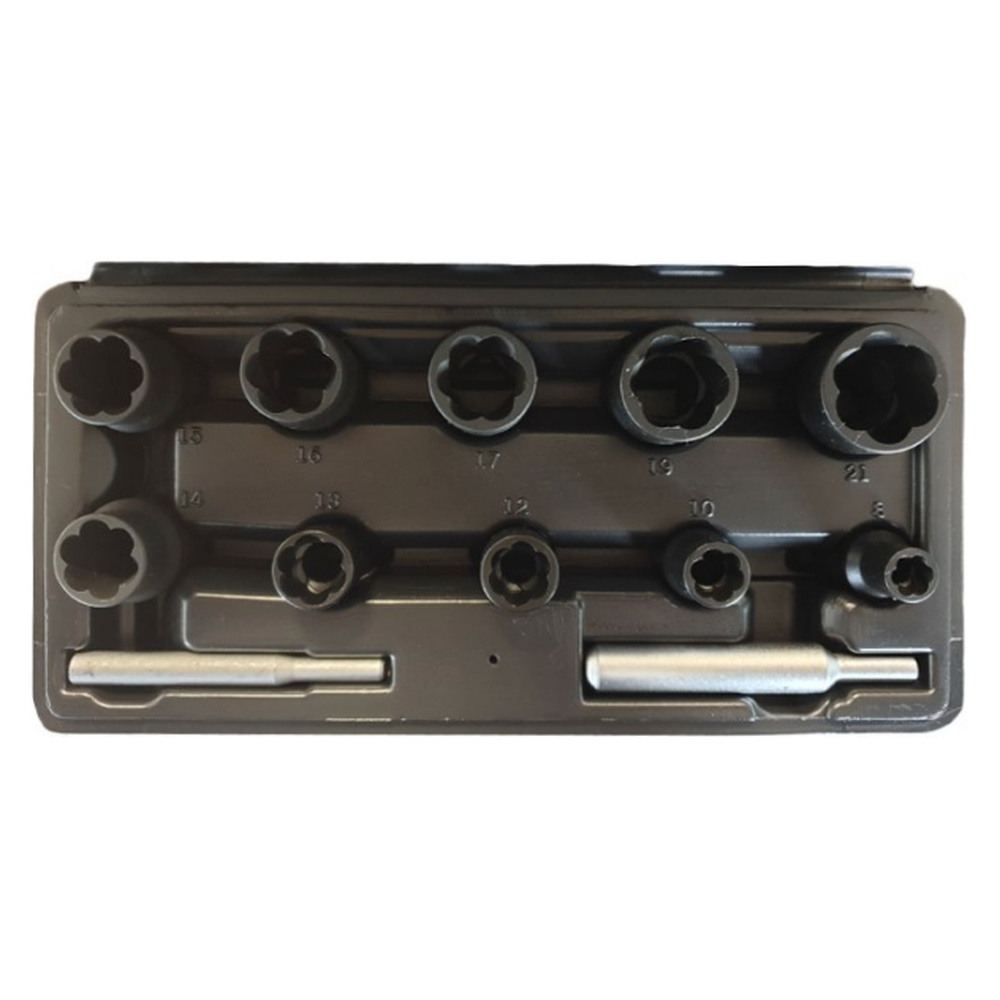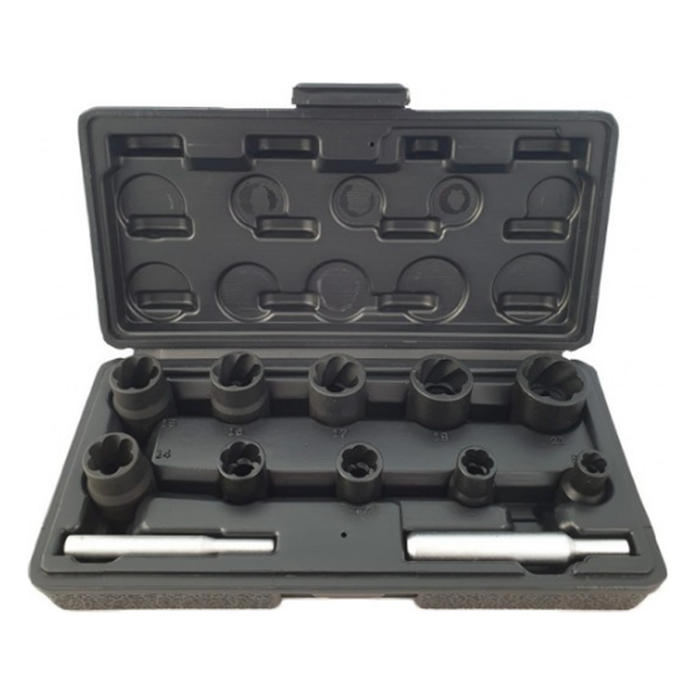 Of je nu werkt aan motoren, voertuigen of andere mechanische toepassingen, deze set biedt de veelzijdigheid en functionaliteit die je nodig hebt. Laat je niet tegenhouden door vastzittende bouten of moeren; met onze Bout en Moer verwijder set ben je verzekerd van effectieve en efficiënte resultaten. Voeg deze onmisbare set vandaag nog toe aan je gereedschapcollectie en maak je volgende project eenvoudiger dan ooit tevoren!