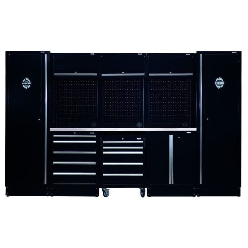 Deze BUNKER 61 cm werkplaatscombinatie is een complete, professionele oplossing voor een perfect georganiseerde werkplaats. De set biedt veel opbergruimte én een roestvrijstalen (RVS) werkblad, ideaal voor intensief gebruik en eenvoudig schoonmaken. Perfect voor werkplaats, garage of magazijn.