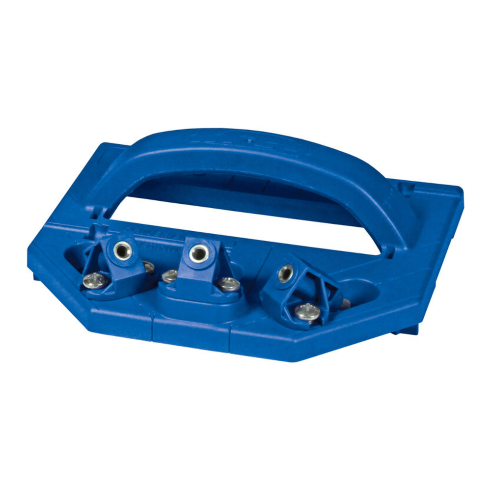 De Deck Jig maakt het boren van de getrapte geleidegaten en het indraaien van schroeven in alle situaties gemakkelijk dankzij drie geharde stalen geleiders - één op 90° ten opzichte van de bordrand en twee in tegengestelde hoeken van 45° - die gemakkelijke toegang bieden bij het werken in de buurt van muren, evenals bij het maken van sterke verbindingen waar planken van begin tot eind tegen elkaar aan liggen. De getrapte boor creëert een perfect gepositioneerd zakgat en vrijgavegat voor de Kreg-dekschroef, terwijl een stopkraag een perfecte boordiepte garandeert.