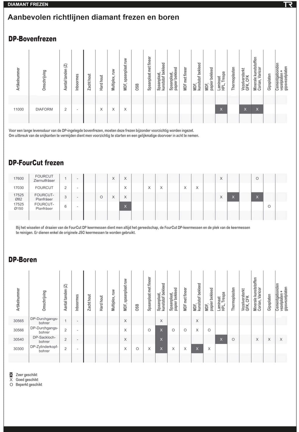 Toepassing: Voor doorboren in klassieke houtachtige en bijzonder agressieve materialen, zoals HPL en cementgebonden spaanplaat. Ten opzichte van de 30565-serie is de doorvoer hoger in te stellen.