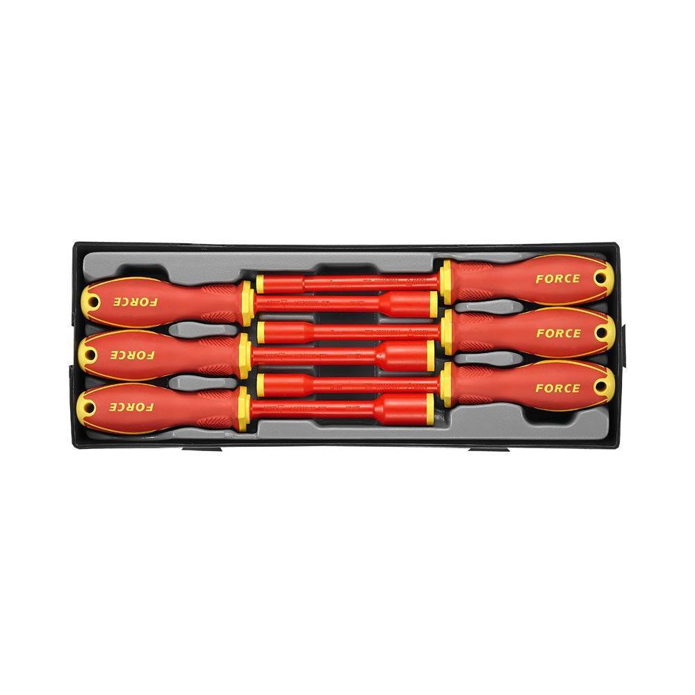 De dopschroevendraaiers zijn geïsoleerd en gemaakt van thermogehard, schokabsorberend polystyreen, wat ervoor zorgt dat ze bestand zijn tegen de zware eisen van dagelijks gebruik. Deze hoogwaardige materialen bieden niet alleen een uitstekende grip, maar beschermen ook tegen elektriciteit, waardoor ze ideaal zijn voor werkzaamheden rondom elektrische installaties.