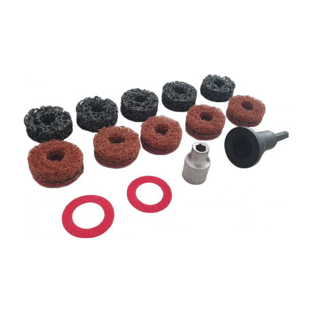Voor het professioneel reinigen van draadeinden op de wielmoeren en wielnaven. Met dit set verwijder je eenvoudig roest en corrosie door de meegeleverde adapter op een boormachine te bevestigen. Met het verloop van 1/2'' naar 1/4'' zeskant is het ook mogelijk om de borstels te gebruiken met een slagmoersleutel of luchtratel. De borstels zijn ook als navulling beschikbaar (WT-2243-10).