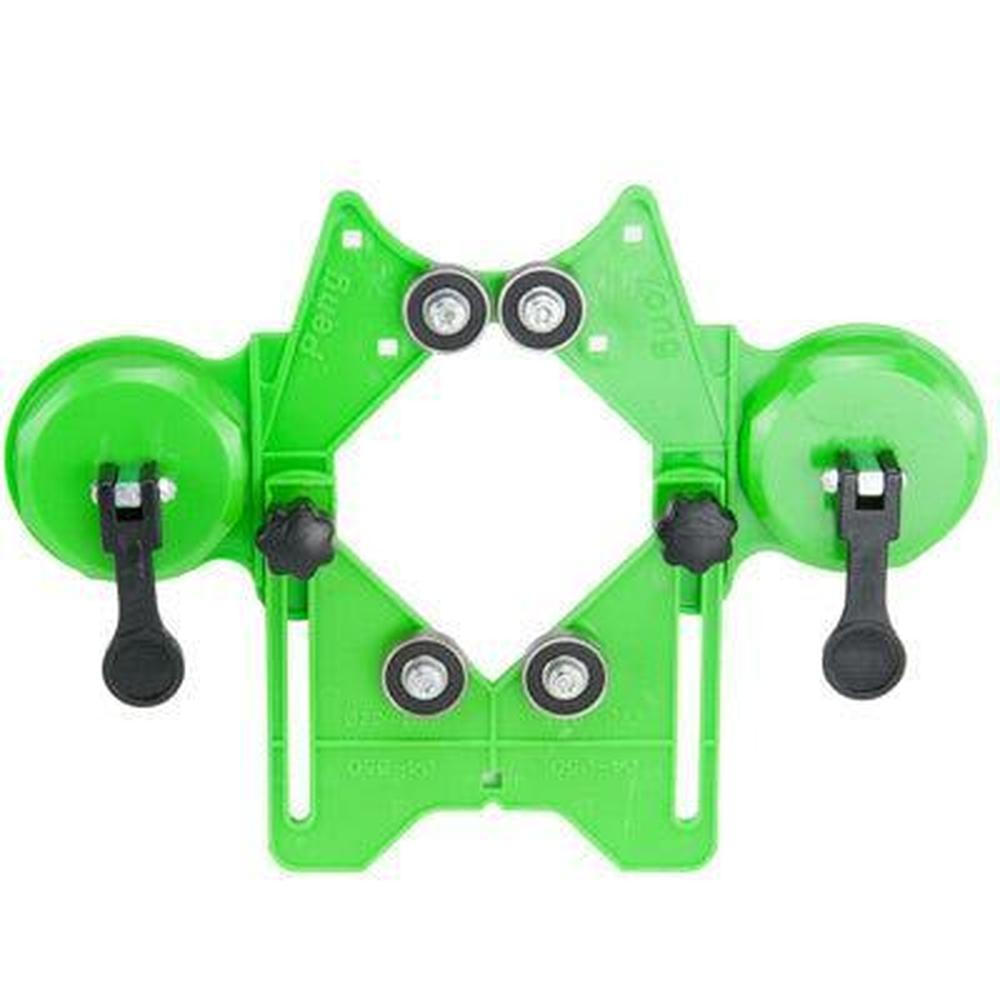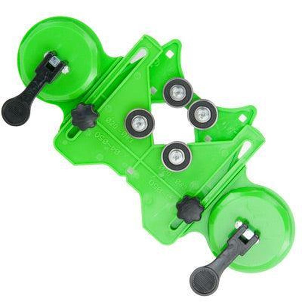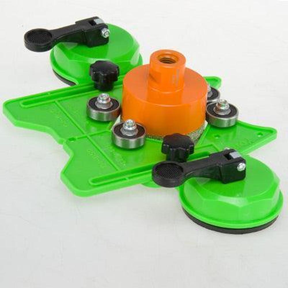 Met de grote kunststof draaiknoppen kun je de boor eenvoudig en nauwkeurig instellen op de gewenste diameter, variërend van 4 mm tot maar liefst 83 mm. Dit maakt het mogelijk om te werken met diverse maten diamantboren, zodat je altijd het juiste gereedschap bij de hand hebt voor elke klus. Of je nu tegels, graniet, marmer, pvc of linoleum bewerkt, deze boorgeleider biedt een stabiele en secure bevestiging op een vlakke ondergrond.