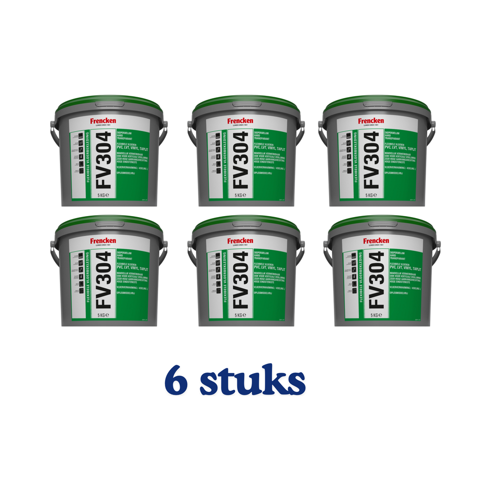 De FV304 komt in handige emmers van 5 kg, met een totaal van 6 emmers in deze verpakking. Dit maakt het ideaal voor zowel kleine als grotere projecten. Met zijn gebruiksgemak en krachtige hechting is deze lijm de perfecte keuze voor iedereen die op zoek is naar hoogwaardige vloerlijm.