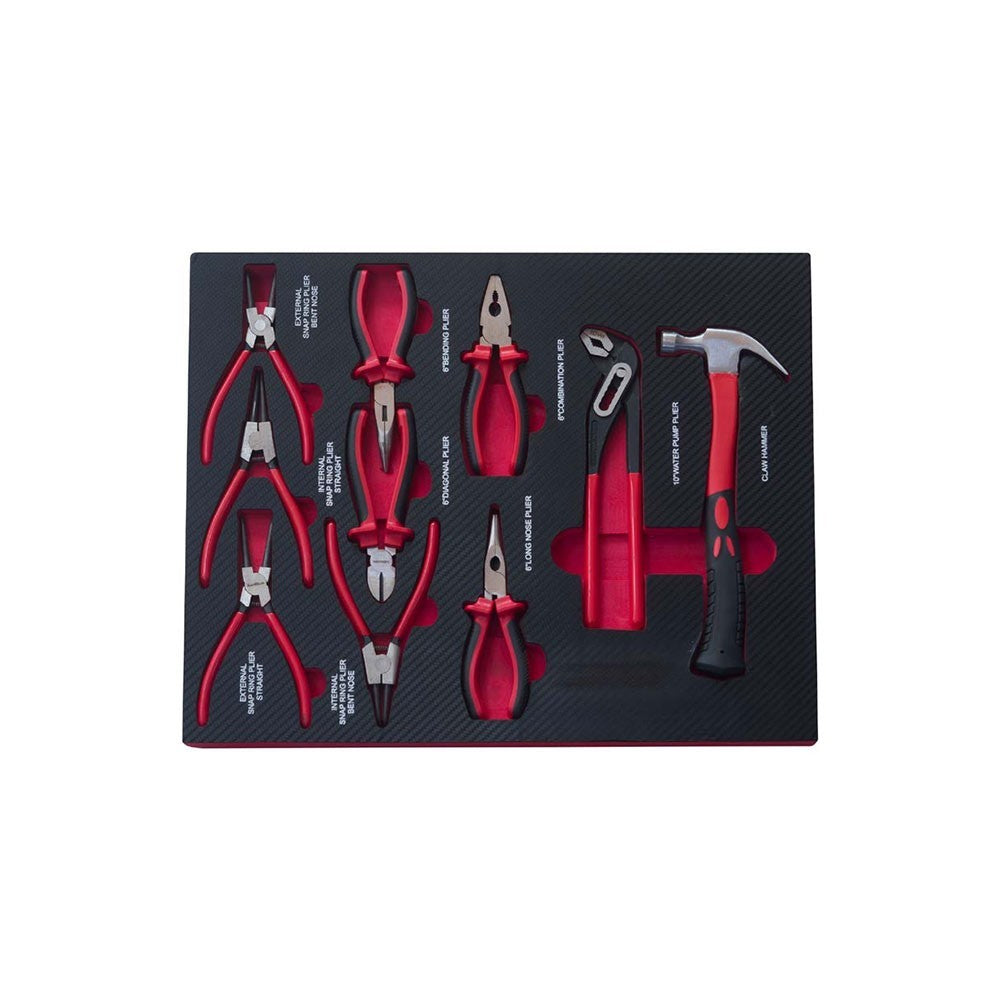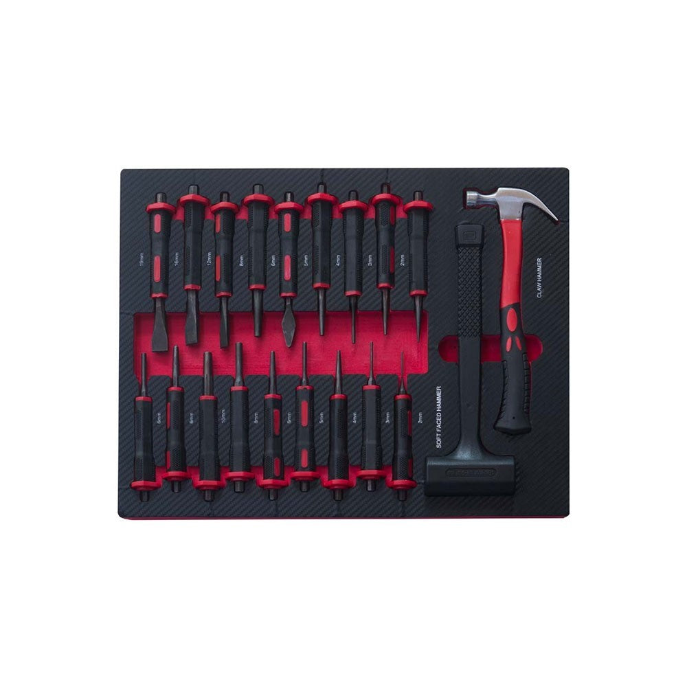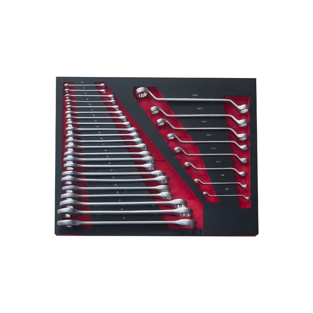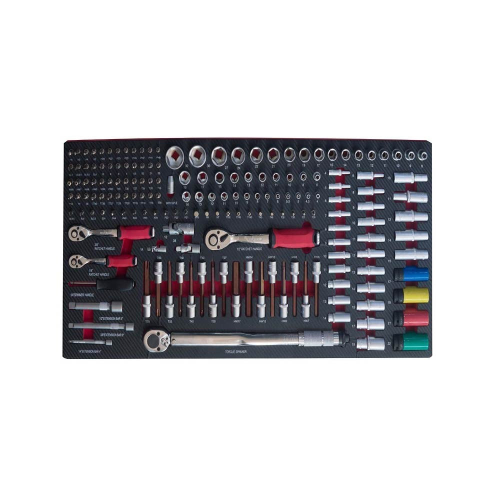 Perfect georganiseerd: Elk gereedschap is verpakt in olie- en benzinebestendig foam, waardoor je tools altijd beschermd en overzichtelijk blijven.