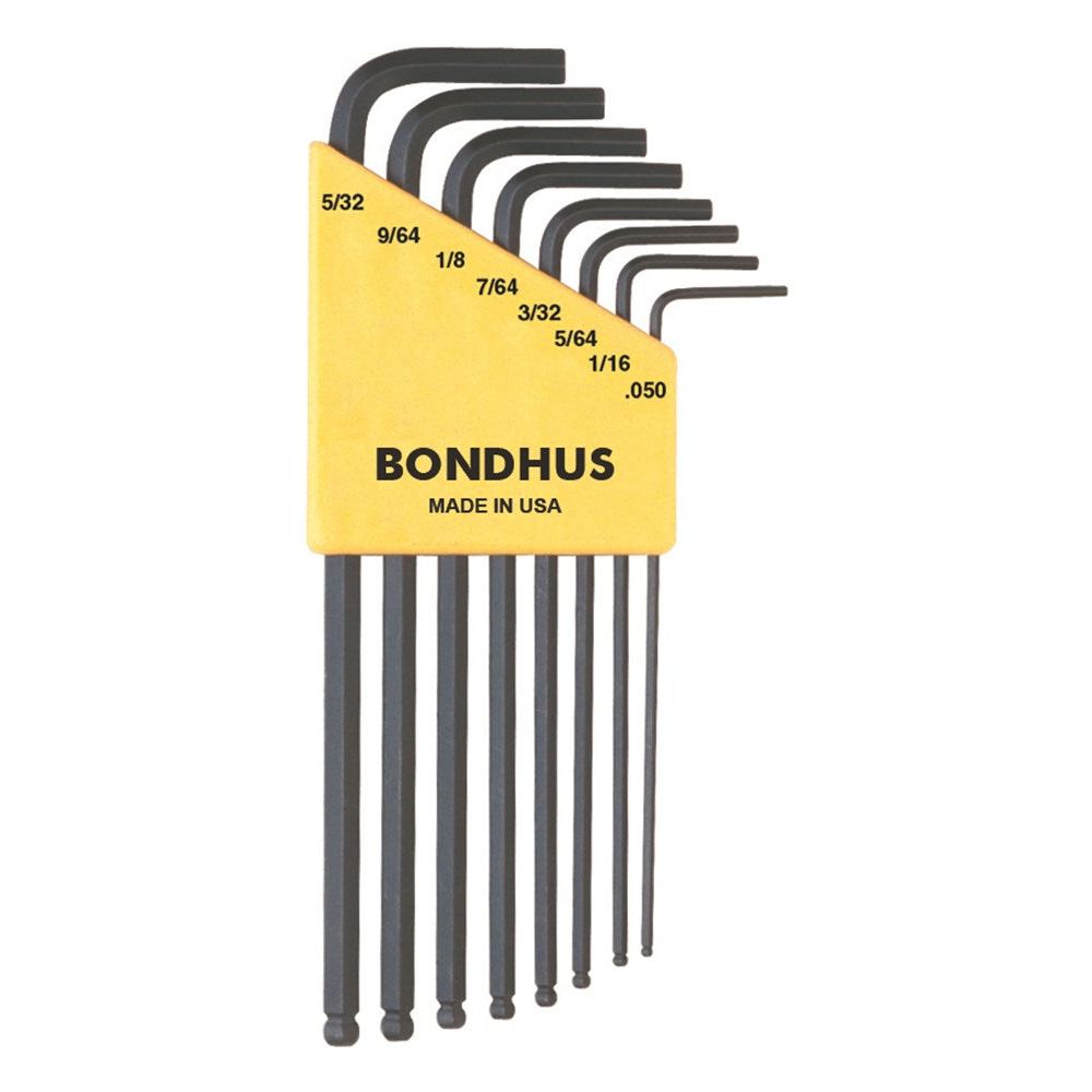 - 8 stuks stiftsleutels met kogelkop, inch: .050, 1/16, 5/64, 3/32, 7/64, 1/8, 9/64, 5/32”