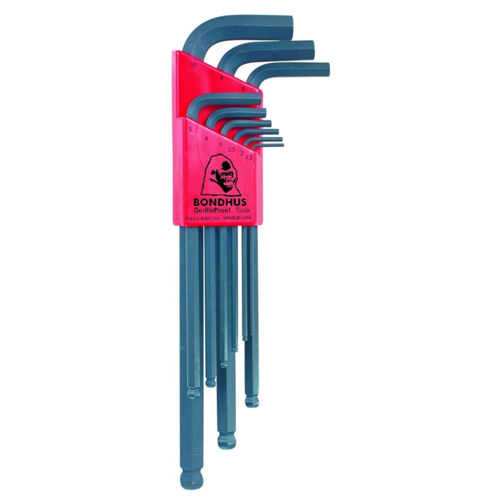 - 9 stuks stiftsleutels met kogelkop, metrisch: 1.5, 2, 2.5, 3, 4, 5, 6, 8, 10 mm