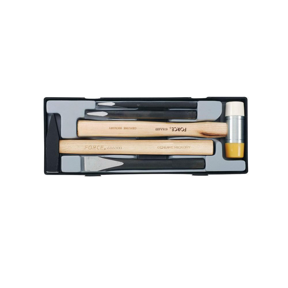 De Hamer & Beitelset komt in een praktische verpakking van thermogehard, schokabsorberend polystyreen, wat niet alleen zorgt voor een veilige opslag en transport, maar ook perfect past binnen alle Force opbergsystemen. Met afmetingen van L375 x B145 x H37 mm is deze set compact maar compleet, en altijd binnen handbereik wanneer je hem nodig hebt.