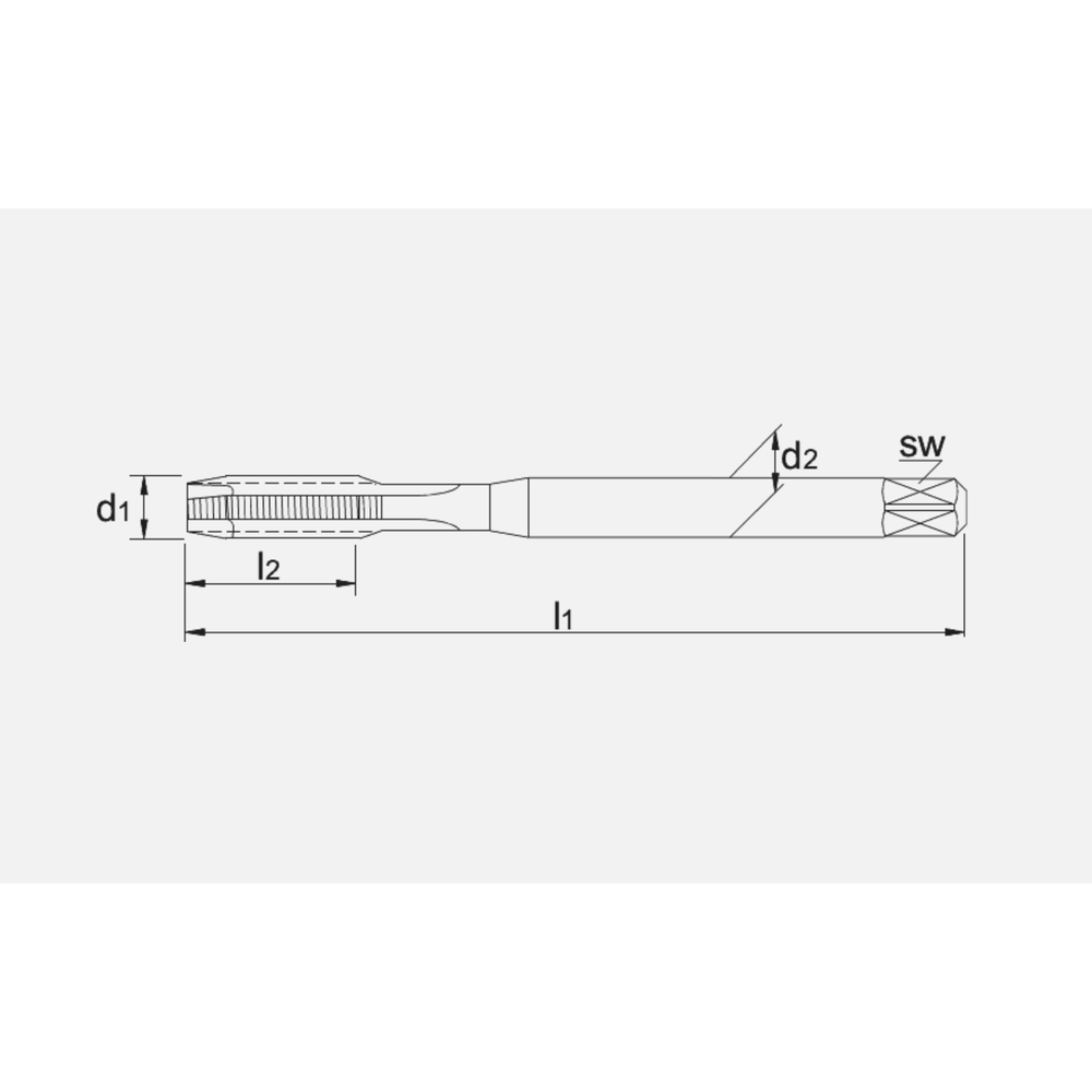 De schacht van deze tap is verdikt, wat zorgt voor een verhoogde stijfheid en stabiliteit tijdens het boren en tappen. Dit verhoogt niet alleen de nauwkeurigheid, maar ook de levensduur van de tool. De schilaansnijding maakt het mogelijk om doorlopende gaten te bewerken, wat de veelzijdigheid van deze machinetap verder vergroot.