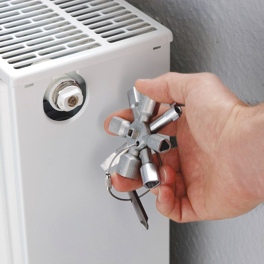- multifunctionele sleutel voor sluitwerken in de segmenten gebouwentechniek (verwarming en sanitair, airco- en ventilatie-installaties en ontluchtingstechniek, elektrotechniek), gas en water verzorging en afsluitsystemen