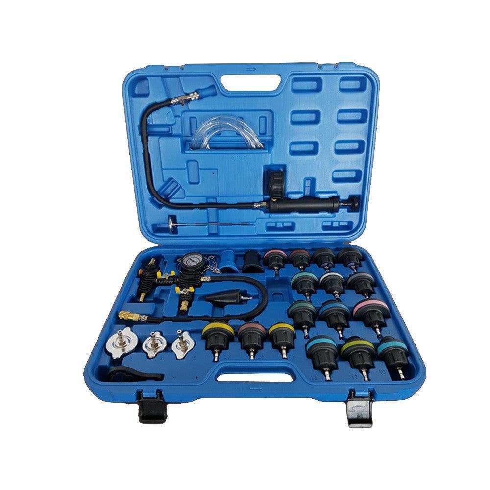 Een van de hoogtepunten van deze set is het vacuüm vulapparaat. Dit innovatieve apparaat maakt het mogelijk om de radiateur grondig te reinigen en deze zonder luchtbellen weer bij te vullen met koelvloeistof. Dit is cruciaal voor de optimale werking van uw koelsysteem.