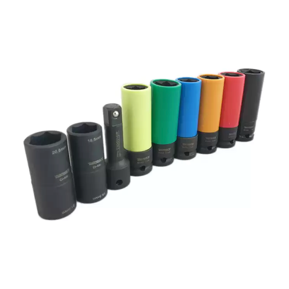 Deze set bevat een selectie krachtdoppen van 1/2'', met de volgende maten: 17 mm, 19 mm en 21 mm. Deze maten zijn essentieel voor het passend maken van de wielbouten van verschillende voertuigen. Of je nu een Tesla-rijder bent die periodiek onderhoud aan zijn voertuig uitvoert, of een auto-liefhebber die de culturele bodem van verschillende merken onderzoekt, deze krachtdoppen zullen je niet teleurstellen.