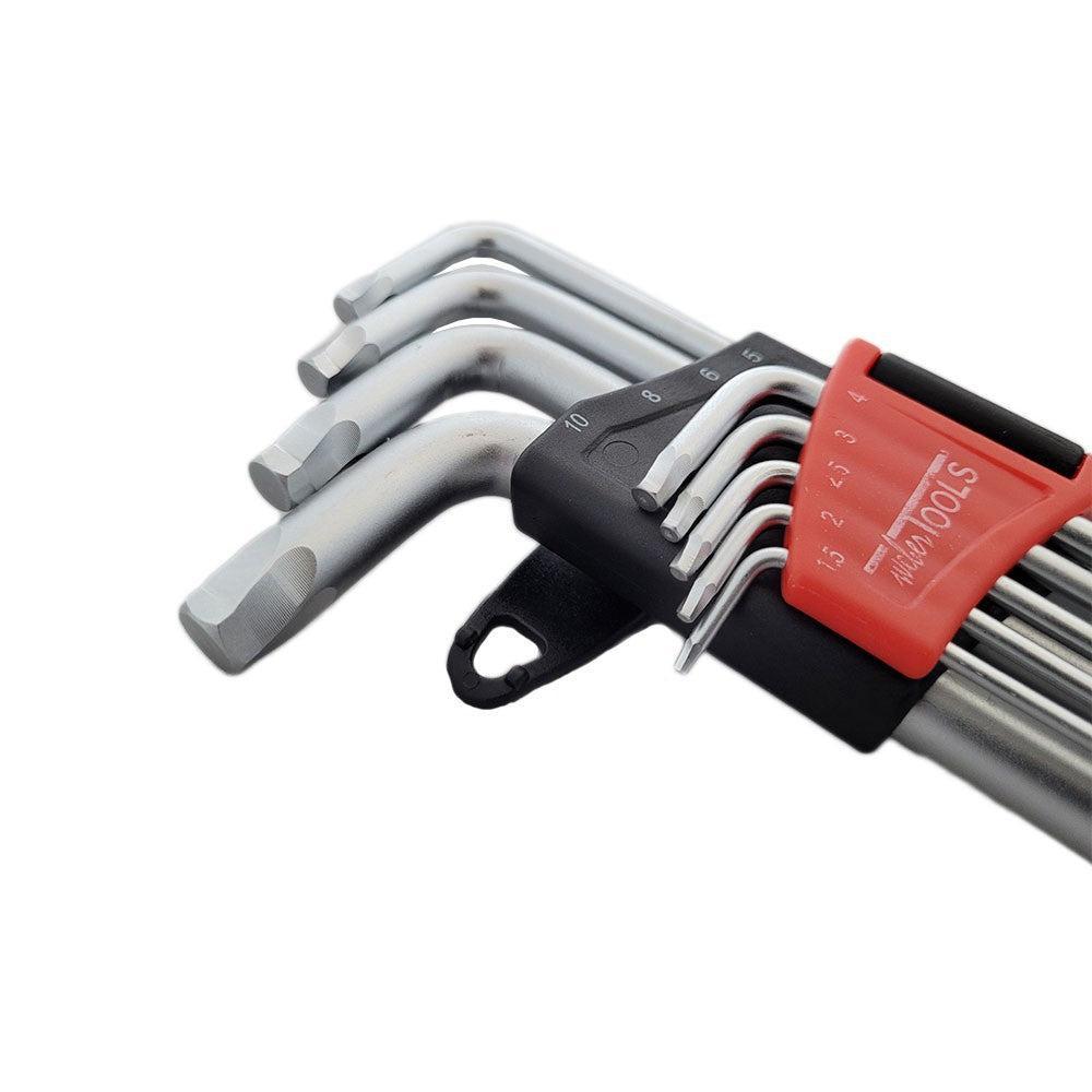 Ontdek de Magische Inbussleutelset, dé must-have toolset voor iedere doe-het-zelver en professional! Deze unieke haakse inbussleutelset omvat een complete reeks van maten, variërend van 1.5 mm tot 10 mm, zodat je altijd de juiste sleutel bij de hand hebt voor al je projecten.