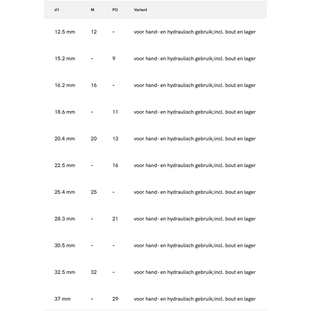 De Phantom Gatenpons beschikt over een complete stempel en matrijs, inclusief een betrouwbare kogellagerbout. Dit maakt het mogelijk om nauwkeurige en strakke uitsparingen te creëren in staal (St37) met een dikte tot maar liefst 3 mm. Afhankelijk van de gebruikte trekbout, kunt u verschillende diktes aan. Gebruik de 6 mm trekbout voor staal tot 1,5 mm, de 9,5 mm trekbout voor staal tot 2 mm, en de 19 mm trekbout voor staal tot 3 mm. Deze flexibiliteit stelt u in staat om meerdere projecten met verschillende materiaaldiktes aan te pakken zonder dat u een nieuwe gatenpons hoeft aan te schaffen.