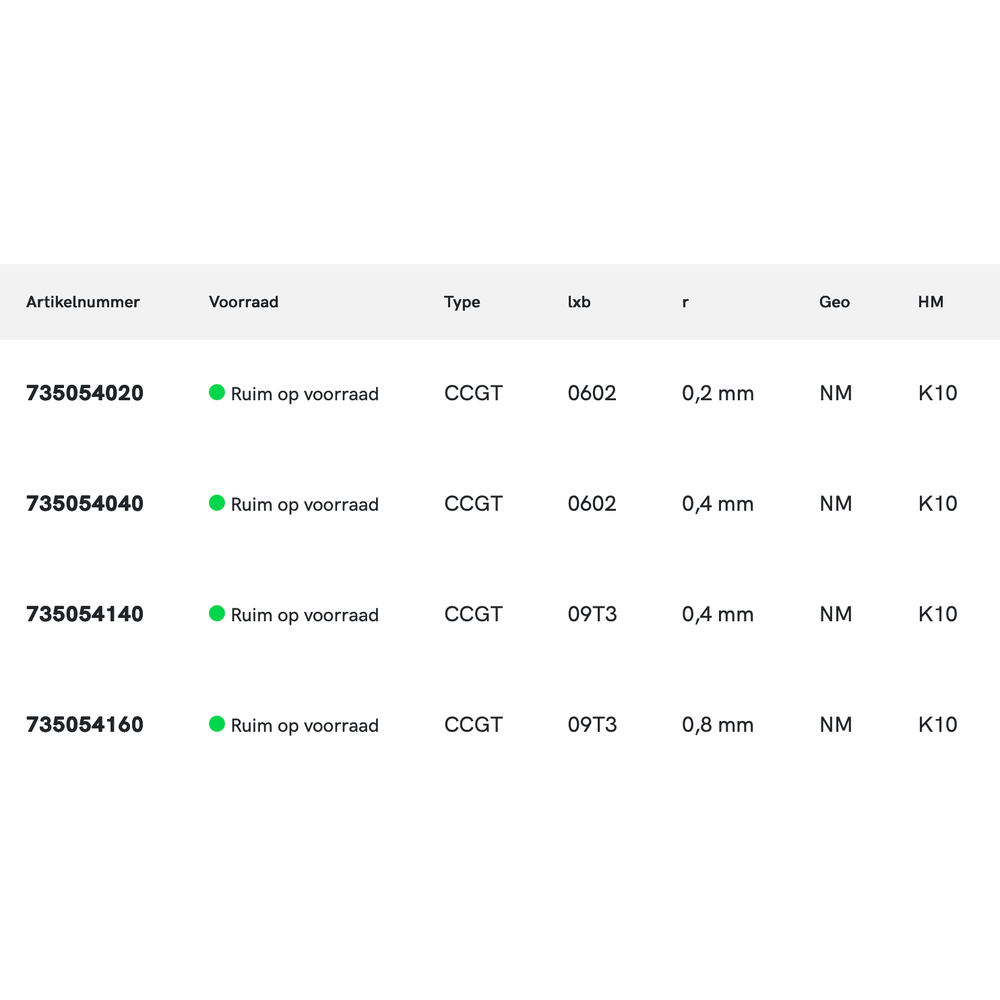 Gemaakt van eersteklas hardmetaal, zorgen de CCGT ALU-platen voor een uitstekende slijtvastheid en duurzaamheid. De speciaal ontwikkelde geometrie van de snijkanten helpt bij het verminderen van wrijvingswarmte, waardoor de levensduur van de plaat wordt verlengd en de bewerkingstijden worden verkort. Dit betekent dat je meer kunt produceren in minder tijd met minder gereedschapswissels, wat je productiviteit verhoogt.