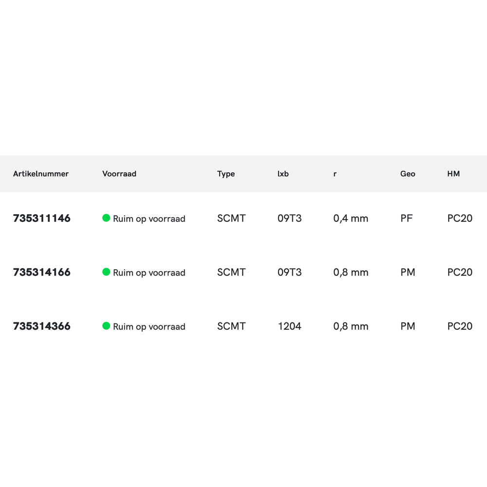 Type: Phantom hardmetaal Wisselplaat SCMT 120408-PM PC20