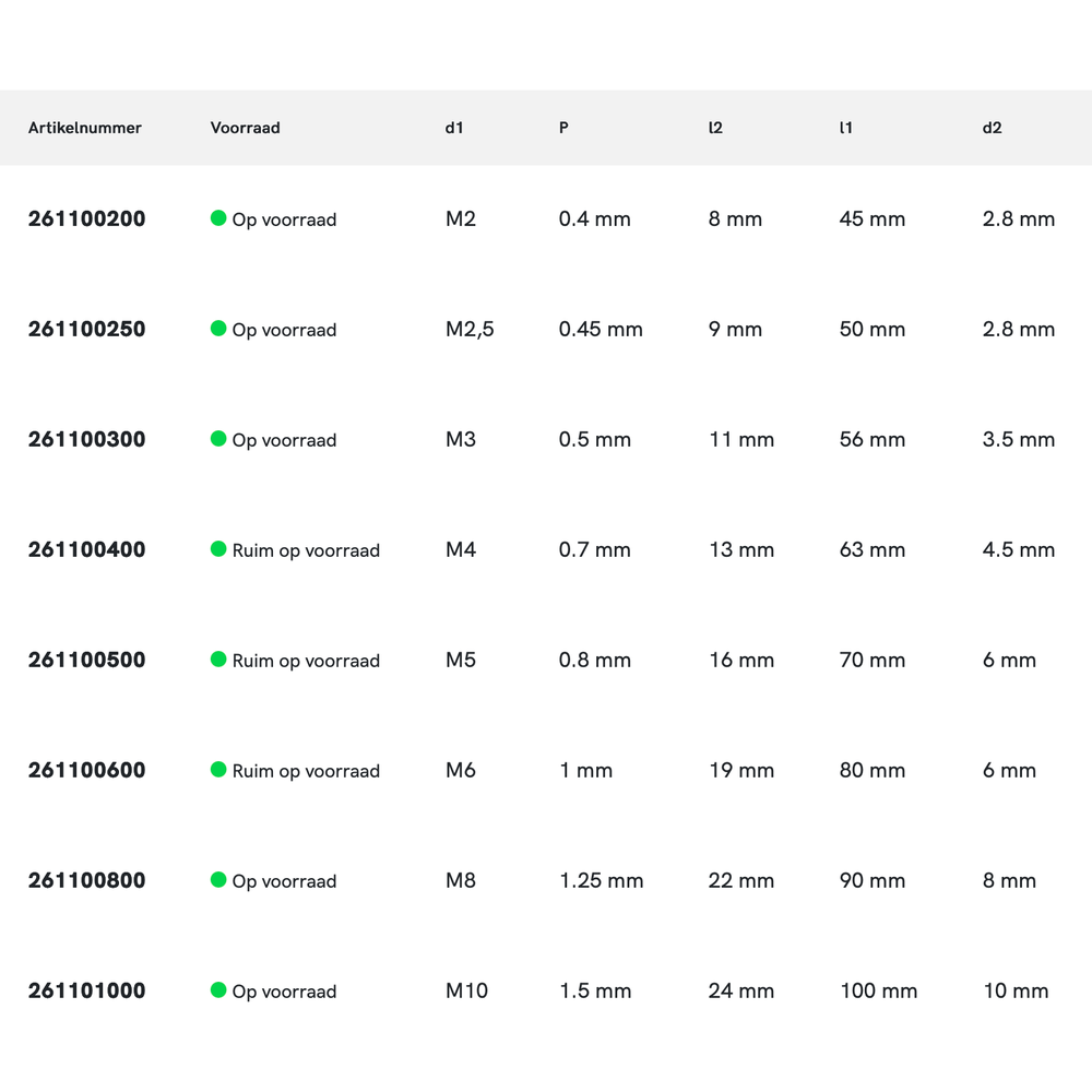 Deze metrische roltap voldoet aan de DIN 2174 norm en is geschikt voor het maken van schroefdraad met hoge precisie. Met een scala aan maatopties beschikbaar, vind je altijd de juiste maat die past bij jouw project. Of je nu een professional bent in de metaalbewerking of een enthousiaste doe-het-zelver, de Phantom HSS-E Roltap biedt de betrouwbaarheid en prestatie die je nodig hebt.