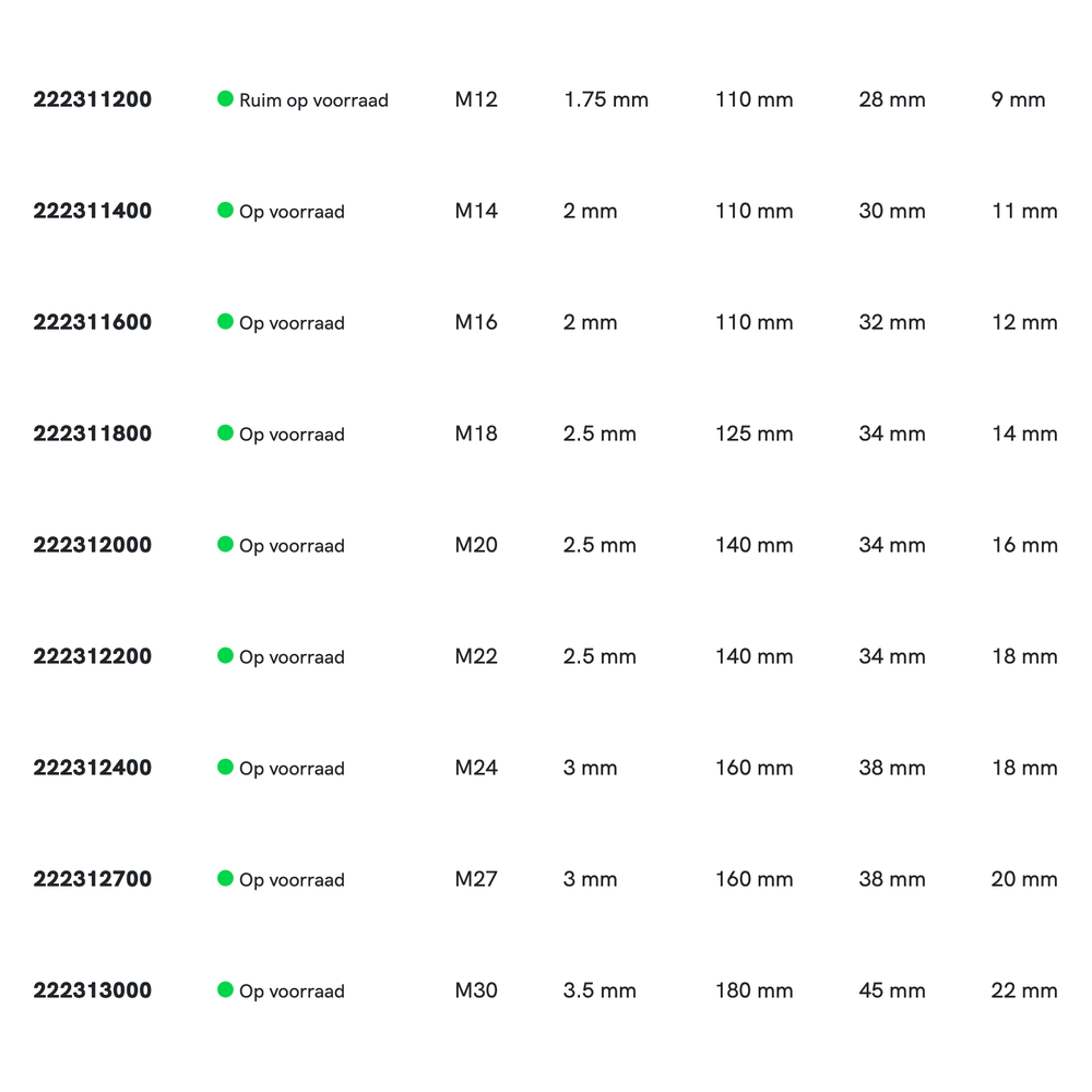 Met een dunne schacht biedt deze tap de flexibiliteit en controle die nodig zijn voor complexe bewerkingen, terwijl de schilaansnijding speciaal is ontworpen voor het creëren van schroefdraad in doorlopende gaten, wat de efficiëntie van uw werk verhoogt. De aansnijding is geoptimaliseerd voor 3,5 tot 5 gangen, waardoor deze tap uitermate geschikt is voor diverse toepassingen in de metaalbewerking.