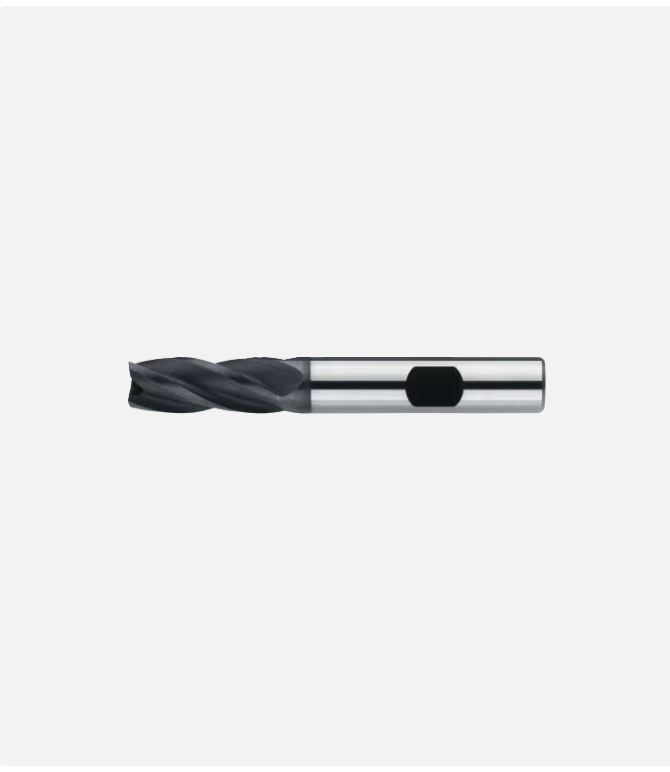 De cilindrische schacht met opspanvlak type Weldon (DIN 6535-HB) garandeert een zekere en stabiele opspanning in geschikte houders, ook bij zwaardere verspaning.
