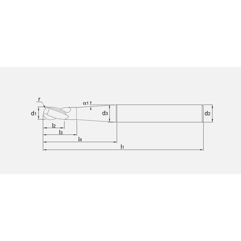 Ontdek de kracht en precisie van de Phantom volhardmetaal Precisie Radiusfrees, ontworpen voor de veeleisende professional die werkt met geharde materialen van HRC 30 tot 65. Deze hoogwaardige frees beschikt over een cilindrische schacht conform de DIN 6535-HA, wat garant staat voor een optimale bevestiging en stabiliteit tijdens het frezen.