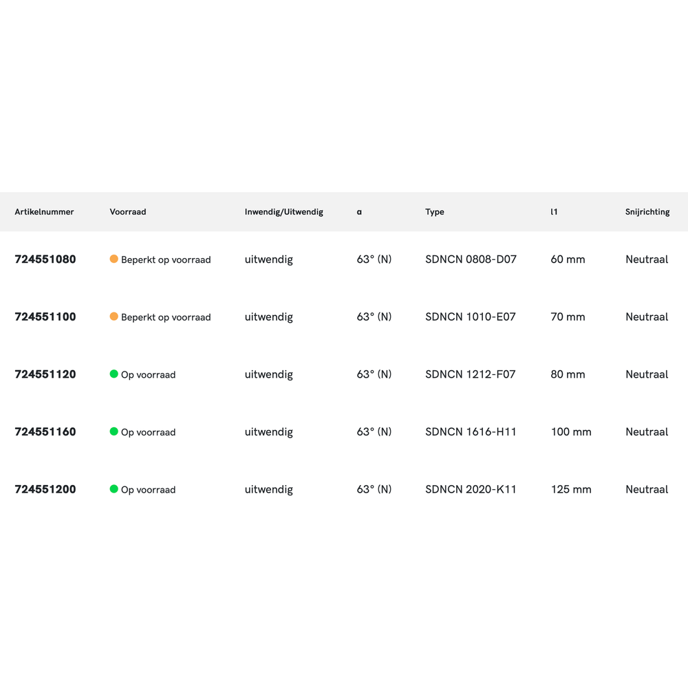 Kies voor de Phantom Wisselplaathouder, 63° SDNCN en ervaar het verschil in precisie en efficiëntie. Met een gebruiksvriendelijke applicatie en een naadloze compatibiliteit met een reeks Phantom hardmetaal wisselplaten, waaronder de DCMT UNI, DCMT Staa en DCGT ALU, bent u verzekerd van een krachtige combinatie voor al uw bewerkingen.