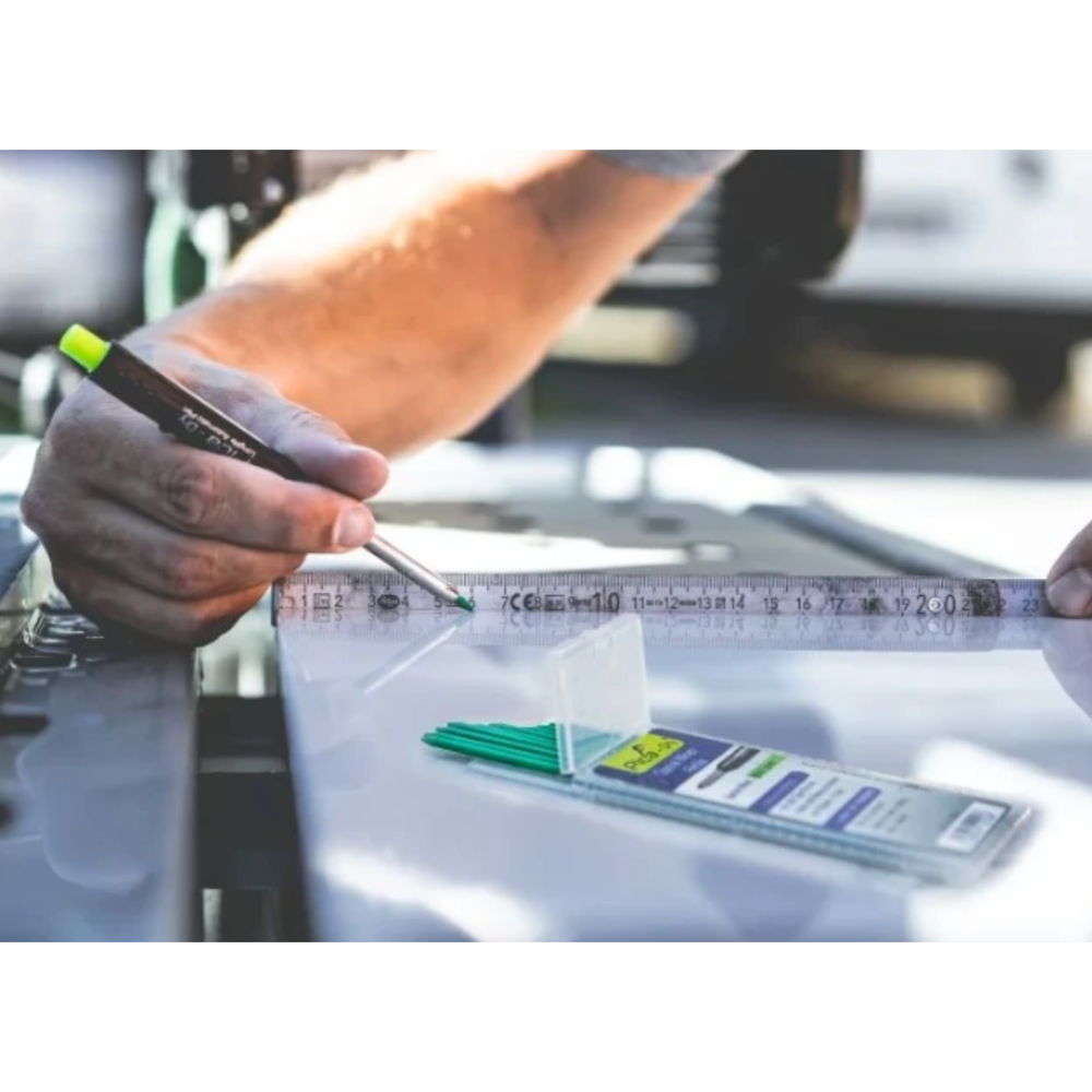 De grafietkleur is perfect voor vrijwel alle ondergronden, of ze nu nat, droog, glad of ruw zijn. Zelfs stoffige, lichte of donkere oppervlakken worden moeiteloos gemarkeerd, waardoor deze vulling ideaal is voor een breed scala aan toepassingen. Wat deze navulling nog aantrekkelijker maakt, is de mogelijkheid om de markeringen eenvoudig te verwijderen van gladde oppervlakken met een simpel doekje, waardoor u altijd kunt corrigeren zonder sporen achter te laten.