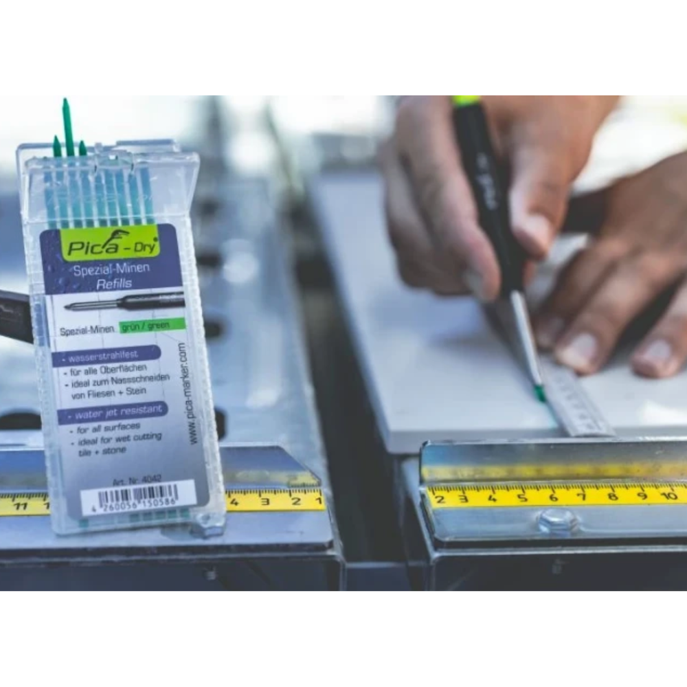 Ontdek de Pica-Dry 4030 Navulling grafiet - een must-have voor elke professional en hobbyist die op zoek is naar precisie en kwaliteit in markeren. Deze navullingen zijn speciaal ontworpen voor het moderne markeerpotlood 3030 van Pica en bieden een ongeëvenaarde veelzijdigheid met hun wateroplosbare "multi-use" vulling. Met de set van 10 staafjes bent u altijd voorbereid, of u nu werkt aan een groot project of kleine details wilt markeren.