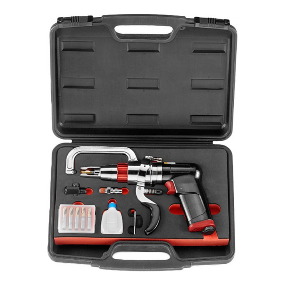 Pneumatische puntlasfreesmachine voor het eenvoudig verwijderen van puntlassen. Set wordt geleverd met 5 HSS bitjes.