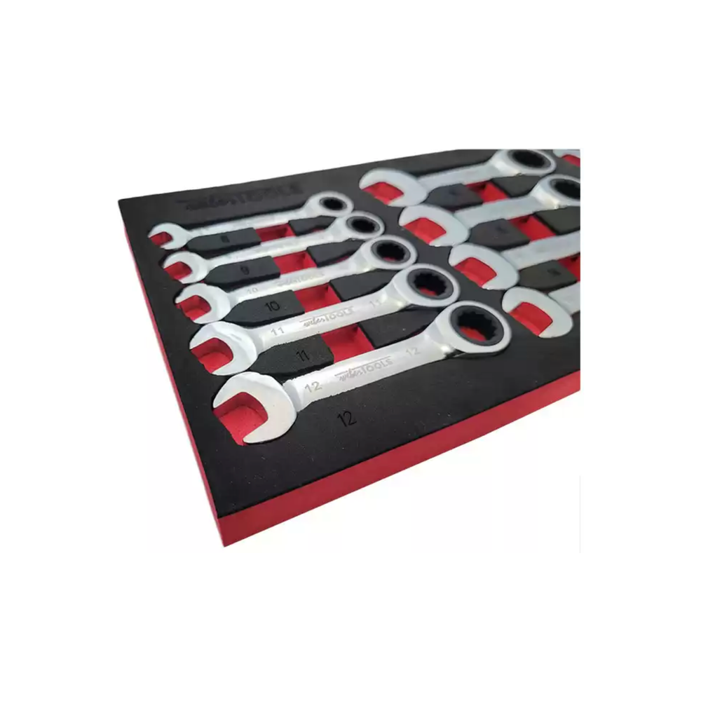 Met een comfortabele grip en een slimme opbergoplossing is deze set praktisch in gebruik en gemakkelijk mee te nemen. Of je nu werkt aan de auto, motor of andere mechanische apparaten, met de Ratelring-steeksleutelset extra kort heb je altijd het juiste gereedschap bij de hand.